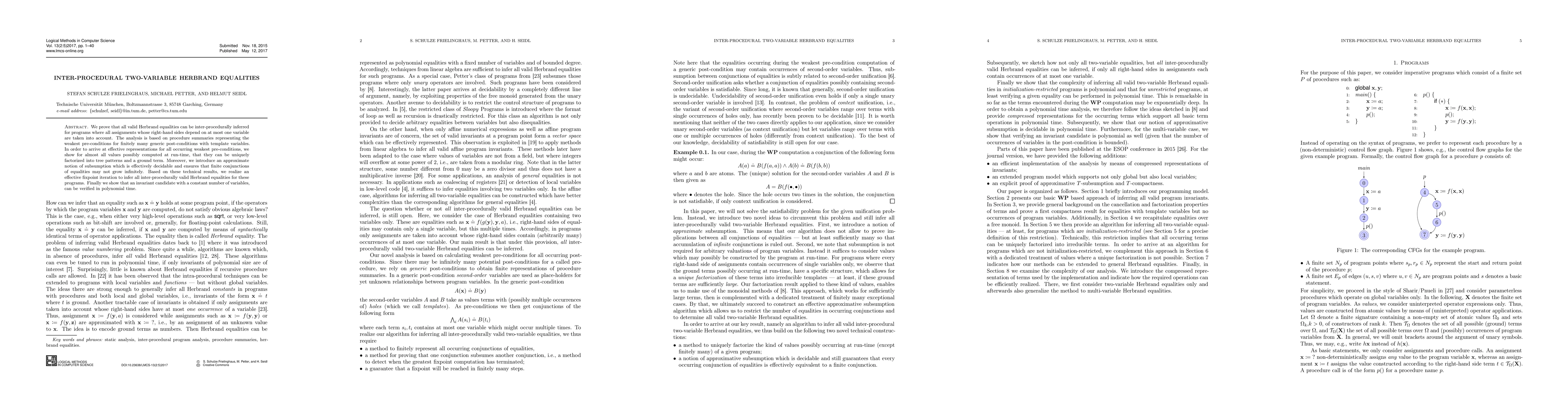 We prove that all valid Herbrand equalities can be inter-procedurally inferred for programs where all assignments whose right-hand sides depend on at most one variable are taken into account. The analysis is based on procedure summaries representing the weakest pre-conditions for finitely many generic post-conditions with template variables. In order to arrive at effective representations for all occurring weakest pre-conditions, we show for almost all values possibly computed at run-time, that they can be uniquely factorized into tree patterns and a ground term. Moreover, we introduce an approximate notion of subsumption which is effectively decidable and ensures that finite conjunctions of equalities may not grow infinitely. Based on these technical results, we realize an effective fixpoint iteration to infer all inter-procedurally valid Herbrand equalities for these programs. Finally we show that an invariant candidate with a constant number of variables, can be verified in polynomial time.