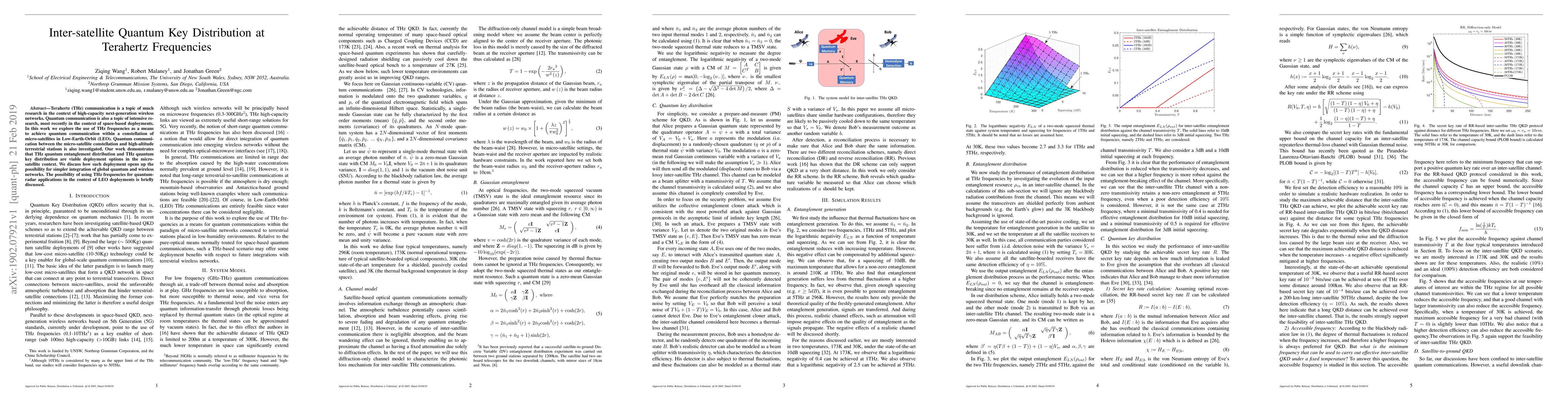 This paper investigates the feasibility of using terahertz (THz) frequencies for quantum key distribution in a constellation of micro-satellites in Low-Earth-Orbit (LEO), demonstrating its viability for both satellite-to-satellite and satellite-to-terrestrial communication, and suggesting potential integration with global quantum and wireless networks.