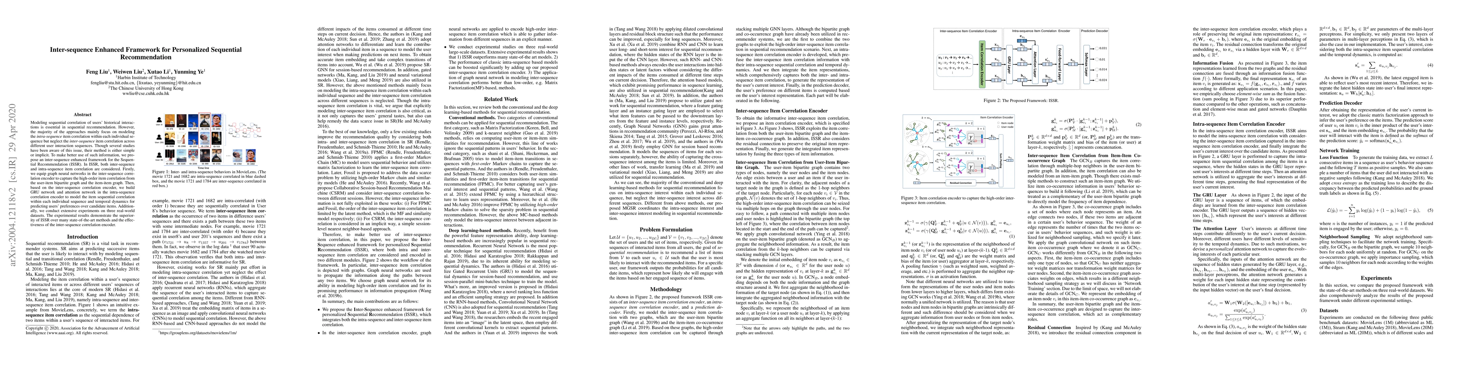 This research introduces an inter-sequence enhanced framework (ISSR) for personalized sequential recommendation, leveraging both intra-sequence and inter-sequence item correlations using graph neural networks and GRU networks. Experimental results show its superior performance compared to other methods.
