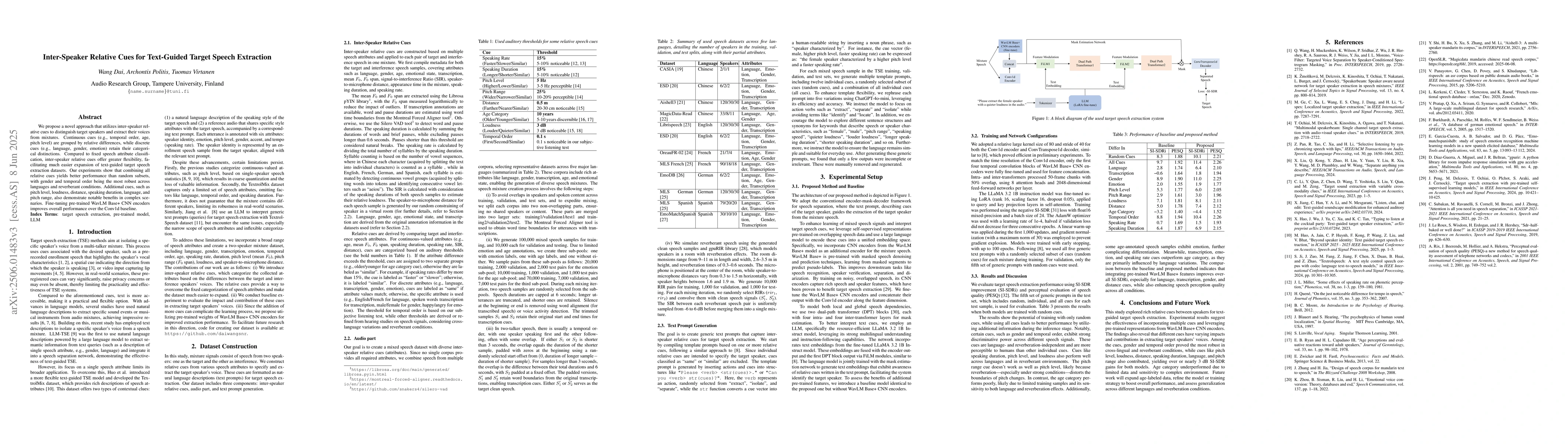 Researchers propose using inter-speaker relative cues to improve text-guided target speech extraction, achieving better performance than random subsets across languages and conditions.