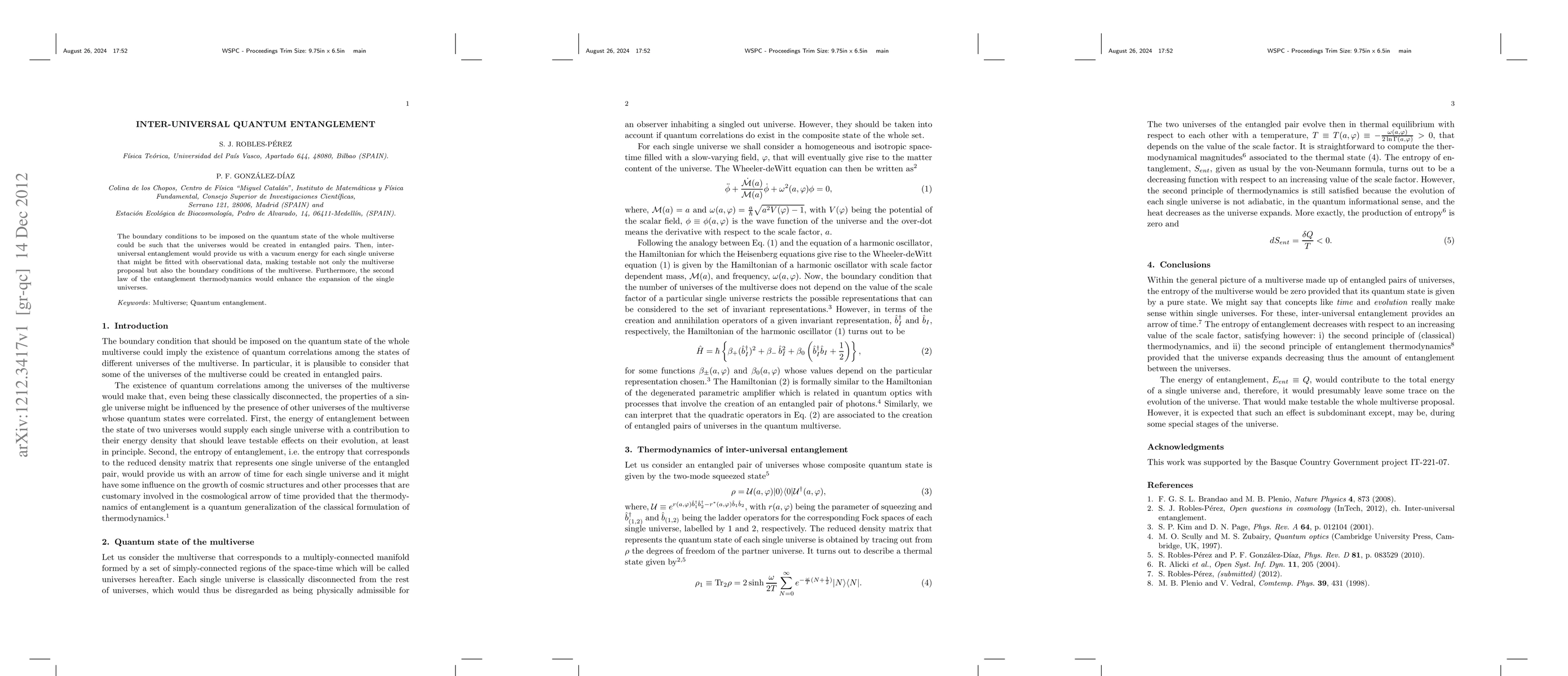The research proposes that quantum states of universes in the multiverse could be entangled, creating a vacuum energy for each universe. This inter-universal entanglement could make the multiverse proposal and its boundary conditions testable and may explain the expansion of universes through the second law of entanglement thermodynamics.