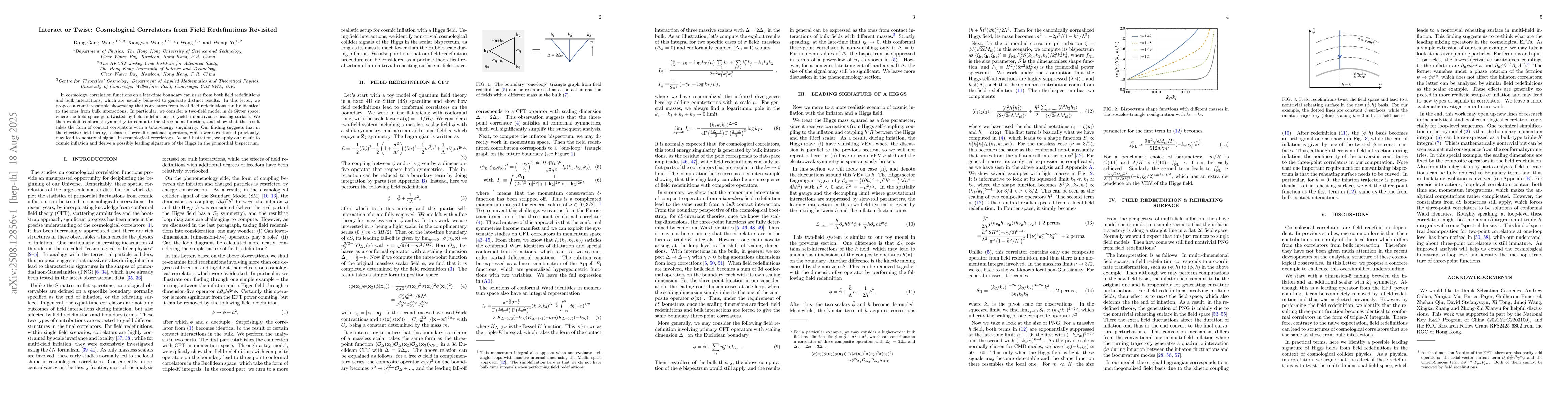 In cosmology, correlation functions on a late-time boundary can arise from both field redefinitions and bulk interactions, which are usually believed to generate distinct results. In this letter, we propose a counterexample showcasing that correlators from local field redefinitions can be identical to the ones from bulk interactions. In particular, we consider a two-field model in de Sitter space, where the field space gets twisted by field redefinitions to yield a nontrivial reheating surface. We then exploit conformal symmetry to compute the three-point function, and show that the result takes the form of contact correlators with a total-energy singularity. Our finding suggests that in the effective field theory, a class of lower-dimensional operators, which were overlooked previously, may lead to nontrivial signals in cosmological correlators. As an illustration, we apply our result to cosmic inflation and derive a possibly leading signature of the Higgs in the primordial bispectrum.