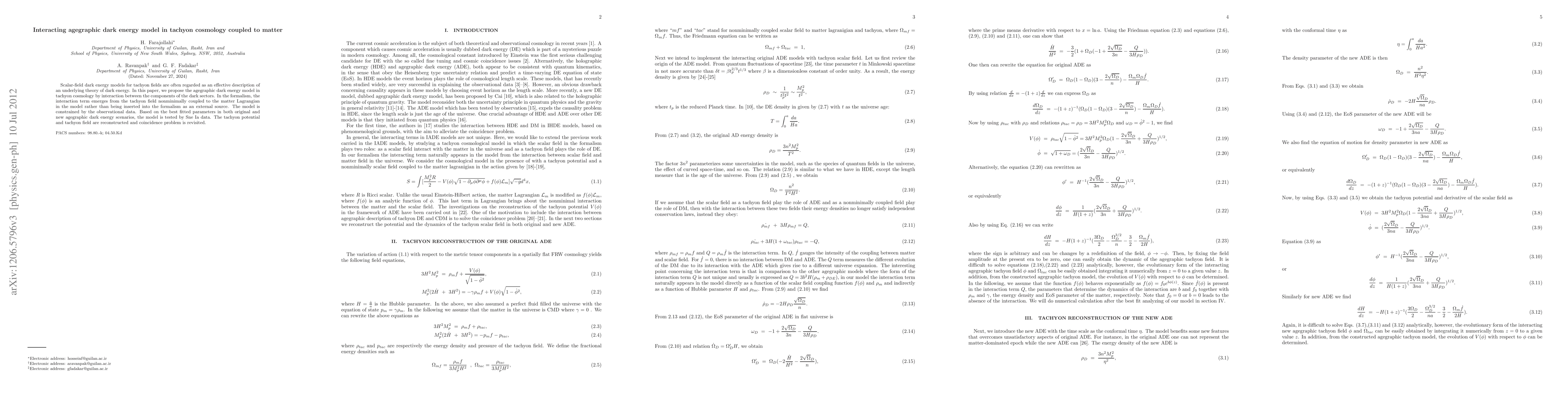 The paper presents an interacting agegraphic dark energy model in tachyon cosmology, constrained by observational data and tested against distance modulus observations.