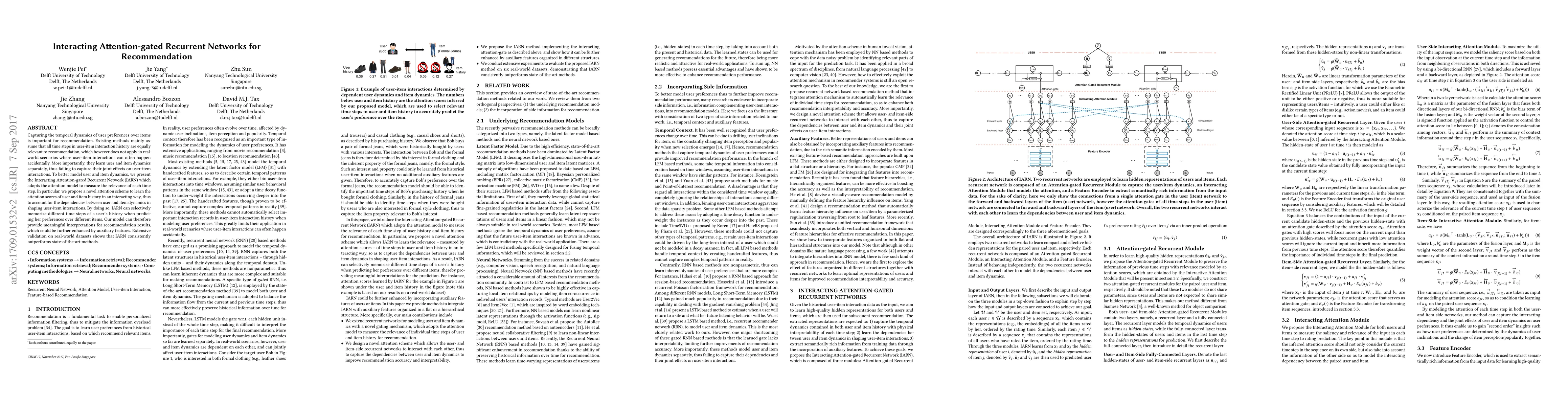 The paper introduces Interacting Attention-gated Recurrent Networks (IARN) for recommendation systems. IARN uses an attention model to assess the relevance of each time step in user-item interaction history, considering joint user and item dynamics. This approach outperforms existing methods on real-world datasets by providing meaningful interpretations for recommendations.