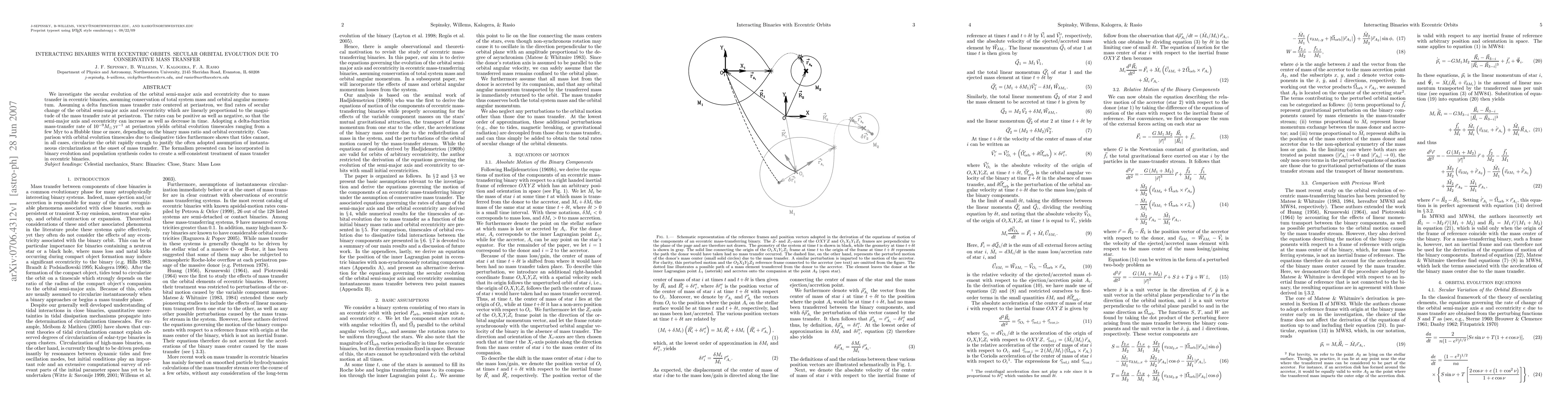This paper explores the secular evolution of eccentric binary systems undergoing mass transfer, finding that the orbital semi-major axis and eccentricity can change in both directions depending on the mass transfer rate. The study shows that tidal effects may not always rapidly circularize orbits, suggesting a more nuanced approach to modeling mass transfer in binary systems.
