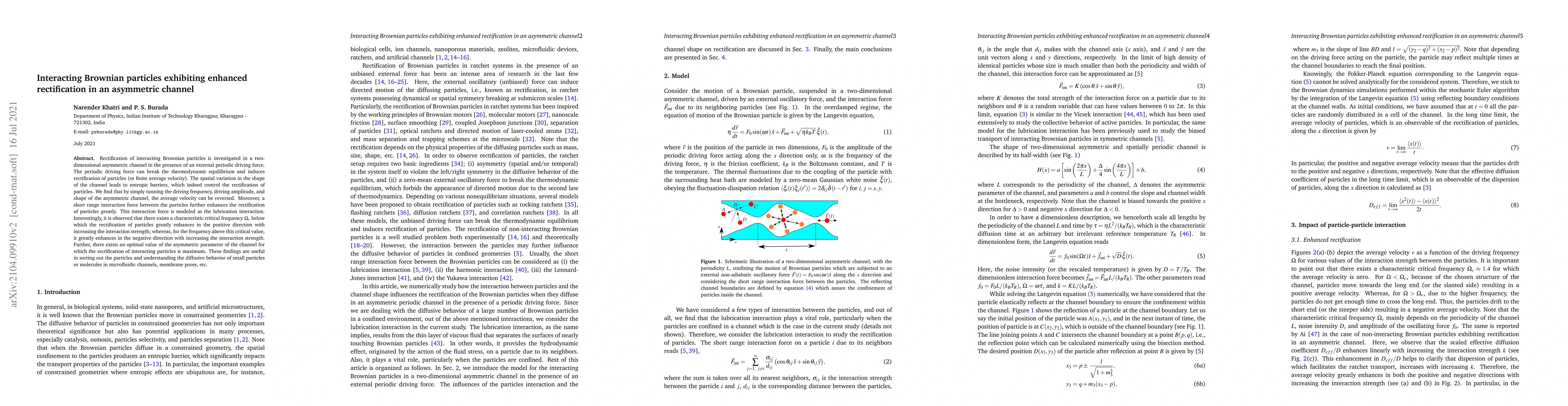 This study investigates the rectification of interacting Brownian particles in an asymmetric channel under periodic driving forces, revealing that tuning driving parameters and particle interactions can reverse the average velocity. Enhanced rectification is observed at a critical frequency, with optimal channel asymmetry maximizing particle sorting.