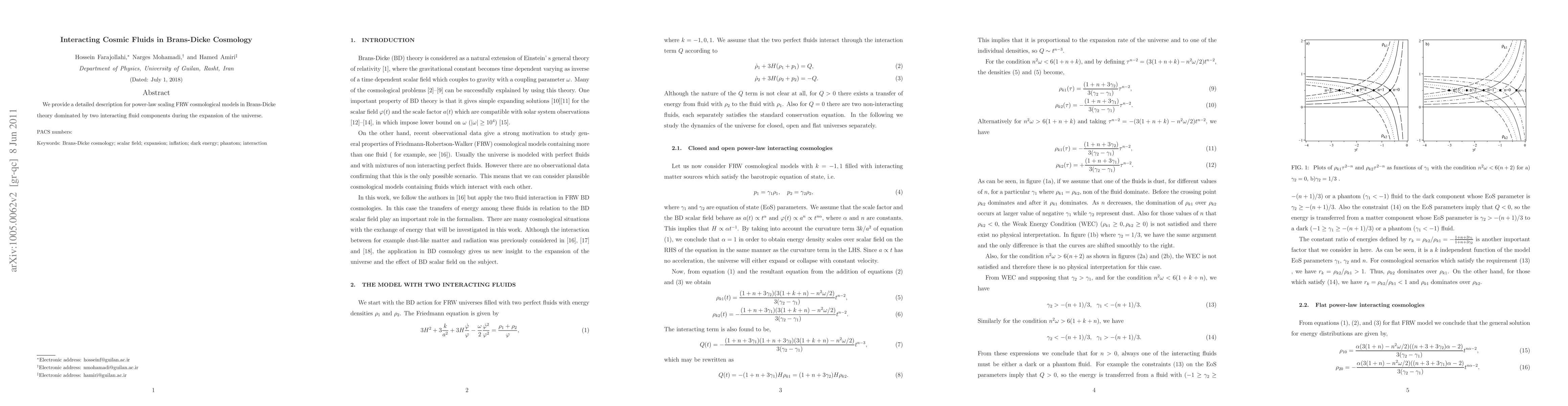 We provide a detailed description for power-law scaling FRW cosmological models in Brans-Dicke theory dominated by two interacting fluid components during the expansion of the universe.