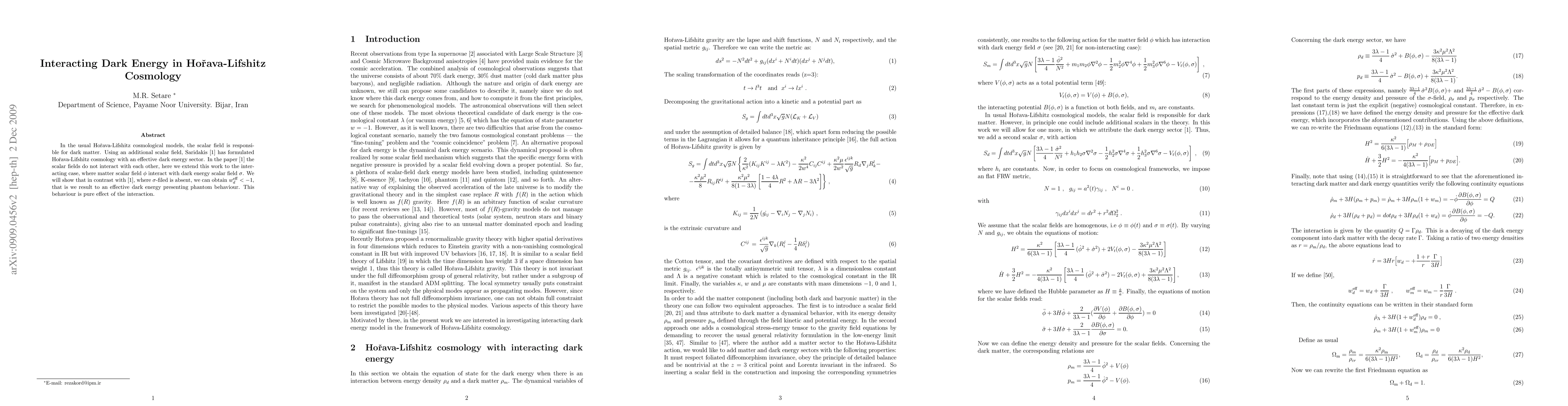 In the usual Ho\v{r}ava-Lifshitz cosmological models, the scalar field is responsible for dark matter. Using an additional scalar field, Saridakis \cite{sari} has formulated Ho\v{r}ava-Lifshitz cosmology with an effective dark energy sector. In the paper \cite{sari} the scalar fields do not interact with each other, here we extend this work to the interacting case, where matter scalar field $\phi$ interact with dark energy scalar field $\sigma$. We will show that in contrast with \cite{sari}, where $\sigma$-filed is absent, we can obtain $w_d ^{\rm eff}<-1$, that is we result to an effective dark energy presenting phantom behaviour. This behaviour is pure effect of the interaction.