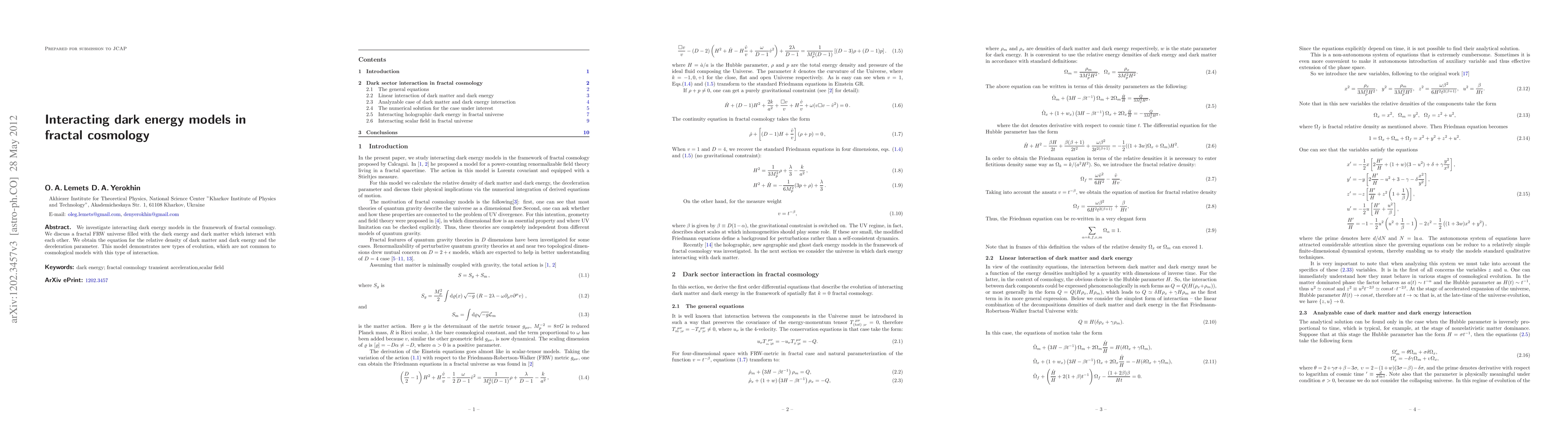 This paper explores interacting dark energy models within fractal cosmology, deriving equations for the relative density of dark energy and dark matter, and the deceleration parameter, revealing unique evolutionary patterns distinct from conventional models.