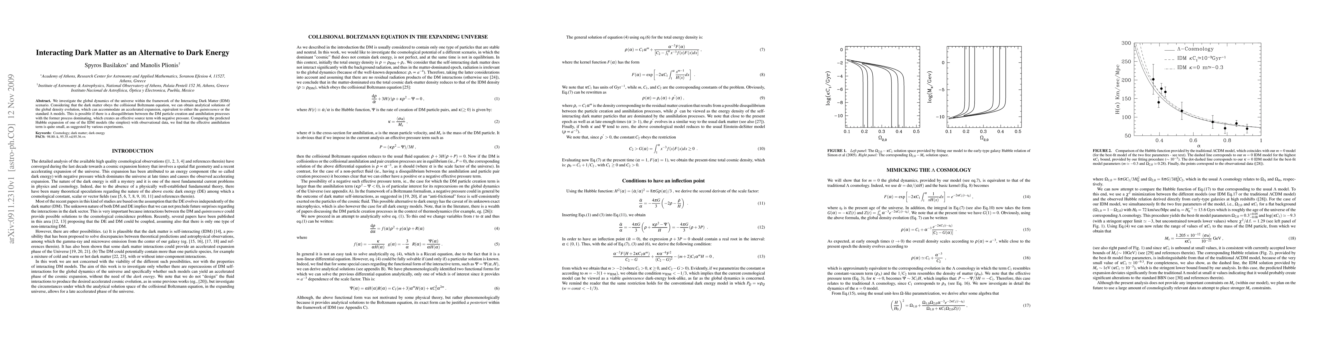 We investigate the global dynamics of the universe within the framework of the Interacting Dark Matter (IDM) scenario. Considering that the dark matter obeys the collisional Boltzmann equation, we can obtain analytical solutions of the global density evolution, which can accommodate an accelerated expansion, equivalent to either the {\em quintessence} or the standard $\Lambda$ models. This is possible if there is a disequilibrium between the DM particle creation and annihilation processes with the former process dominating, which creates an effective source term with negative pressure. Comparing the predicted Hubble expansion of one of the IDM models (the simplest) with observational data, we find that the effective annihilation term is quite small, as suggested by various experiments.