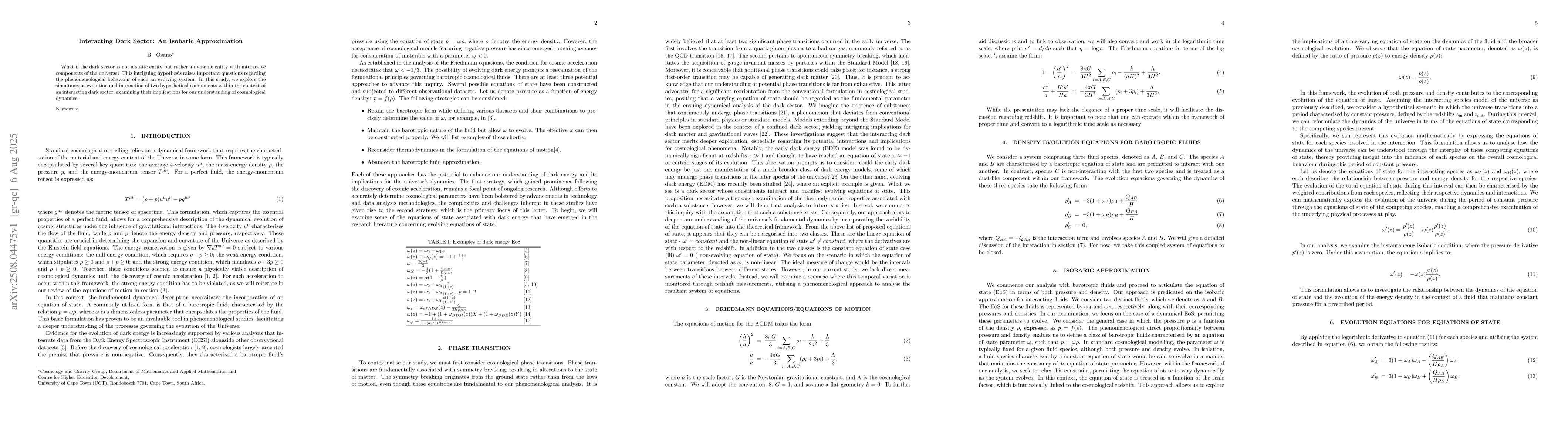 What if the dark sector is not a static entity but rather a dynamic entity with interactive components of the universe? This intriguing hypothesis raises important questions regarding the phenomenological behaviour of such an evolving system. In this study, we explore the simultaneous evolution and interaction of two hypothetical components within the context of an interacting dark sector, examining their implications for our understanding of cosmological dynamics.