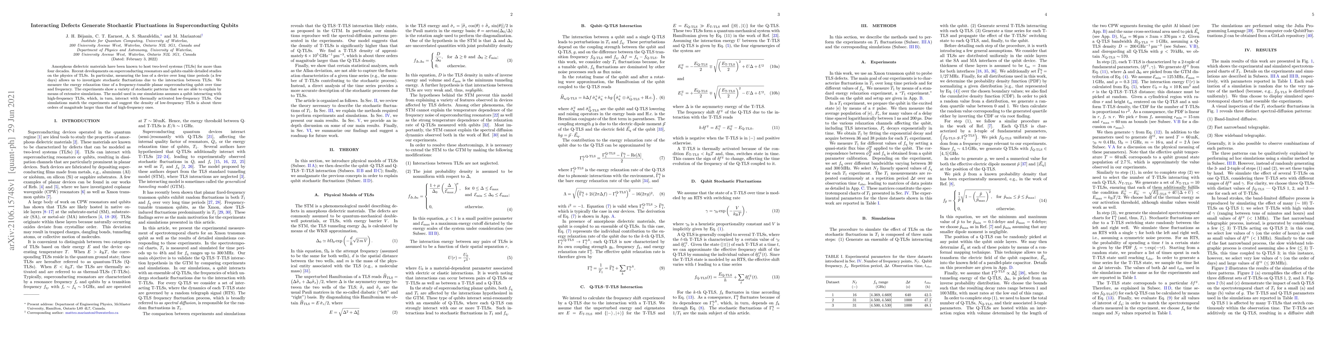 This paper investigates stochastic fluctuations in superconducting qubits due to interactions with two-level systems (TLSs) in amorphous dielectric materials. Experiments reveal diverse stochastic patterns in qubit energy relaxation, which are explained by simulations showing high-frequency TLSs interacting with thermally activated low-frequency TLSs, with the latter being significantly more abundant.