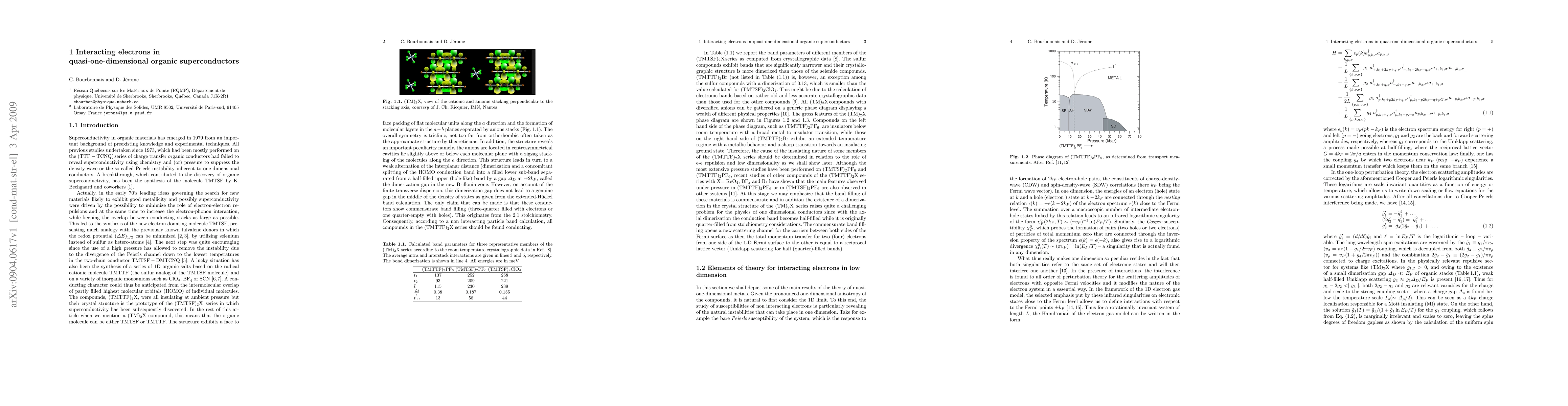 This review explores the phase diagram and basic properties of quasi-one-dimensional organic superconductors through experimental and theoretical lenses, focusing on the behavior of interacting electrons.