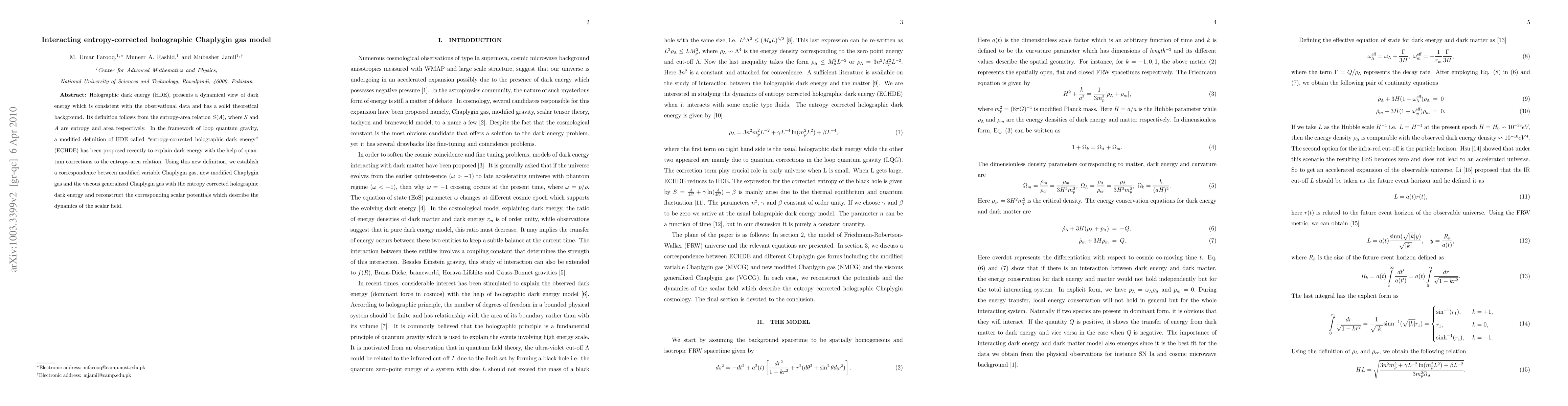 The paper introduces an "entropy-corrected holographic dark energy" (ECHDE) model within loop quantum gravity, correlating it with variable Chaplygin gas models and reconstructing scalar potentials to describe dark energy dynamics. This model incorporates quantum corrections to the entropy-area relation to better explain dark energy.