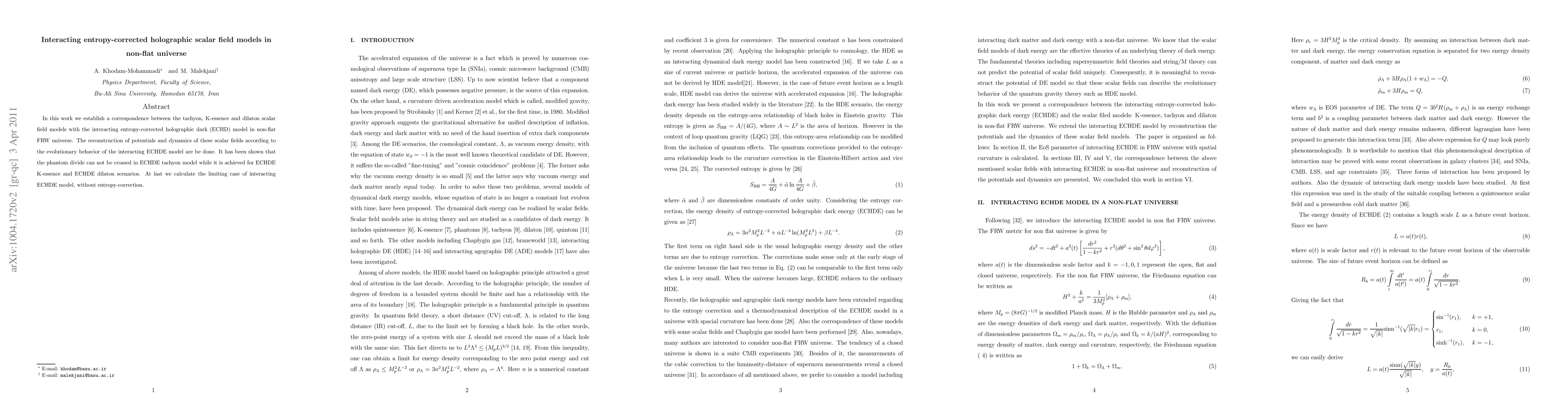 The paper presents a detailed correspondence between different scalar field models and the interacting ECHDE model, providing reconstructed potentials and dynamics for each scenario in a non-flat universe.