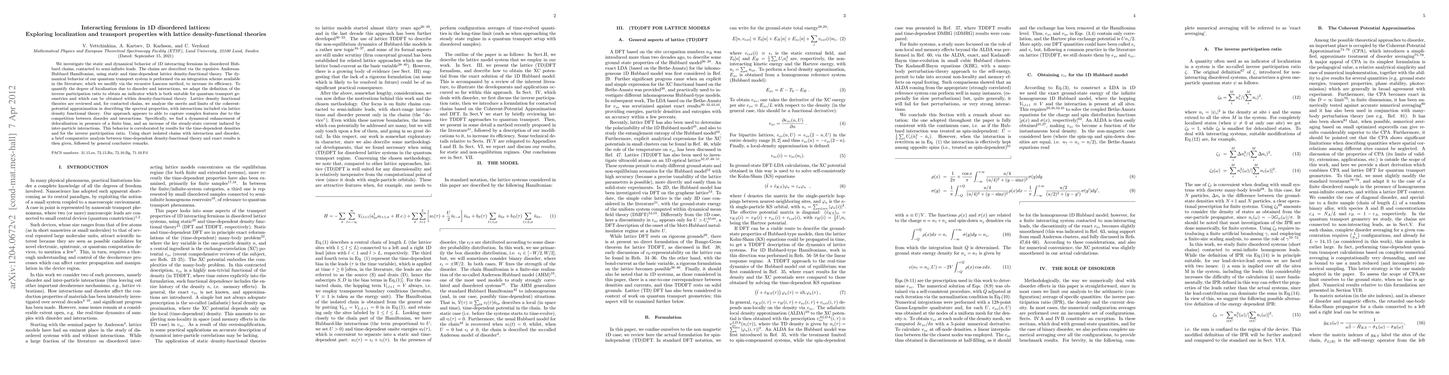 We investigate the static and dynamical behavior of 1D interacting fermions in disordered Hubbard chains, contacted to semi-infinite leads. The chains are described via the repulsive Anderson-Hubbard Hamiltonian, using static and time-dependent lattice density-functional theory. The dynamical behavior of our quantum transport system is performed via an integration scheme available in the literature, which we modify via the recursive Lanczos method, to increase its efficiency. To quantify the degree of localization due to disorder and interactions, we adapt the definition of the inverse participation ratio to obtain an indicator which is both suitable for quantum transport geometries and which can be obtained within density-functional theory. Lattice density functional theories are reviewed and, for contacted chains, we analyze the merits and limits of the coherent-potential approximation in describing the spectral properties, with interactions included via lattice density functional theory. Our approach appears to able to capture complex features due to the competition between disorder and interactions. Specifically, we find a dynamical enhancement of delocalization in presence of a finite bias, and an increase of the steady-state current induced by inter-particle interactions. This behavior is corroborated by results for the time-dependent densities and for the inverse participation ratio. Using short isolated chains with interaction and disorder, a brief comparative analysis between time-dependent density-functional theory and exact results is then given, followed by general conclusive remarks.