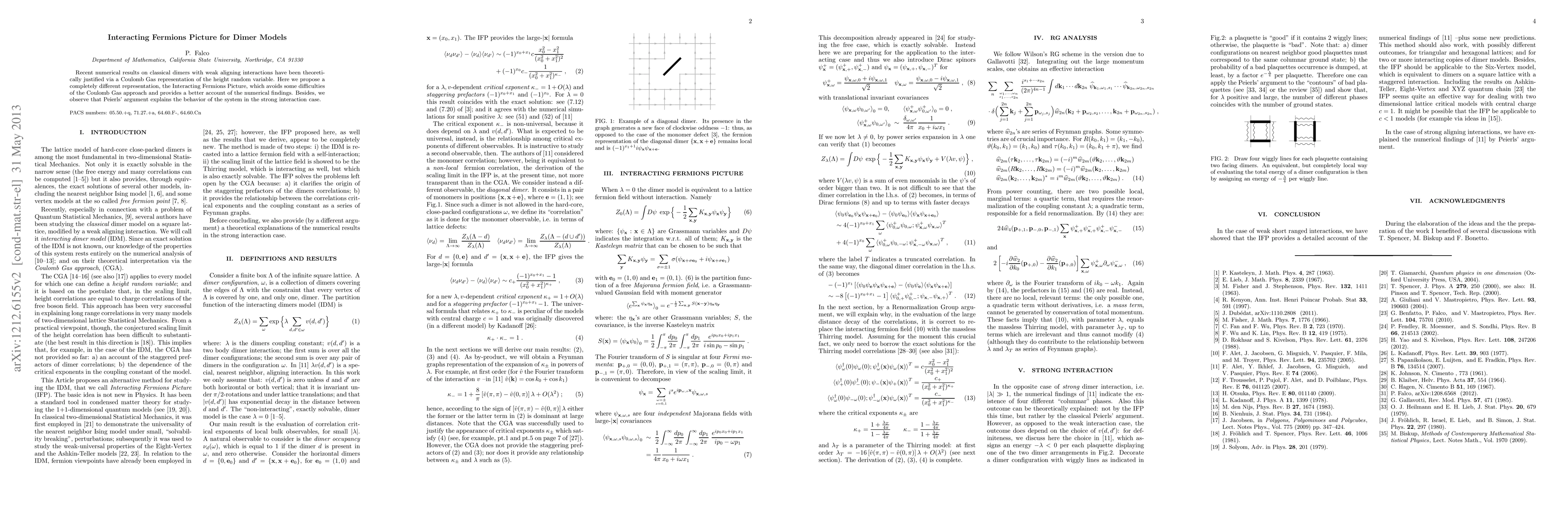 Recent numerical results on classical dimers with weak aligning interactions have been theoretically justified via a Coulomb Gas representation of the height random variable. Here we propose a completely different representation, the Interacting Fermions Picture, which avoids some difficulties of the Coulomb Gas approach and provides a better account of the numerical findings. Besides, we observe that Peierls' argument explains the behavior of the system in the strong interaction case.