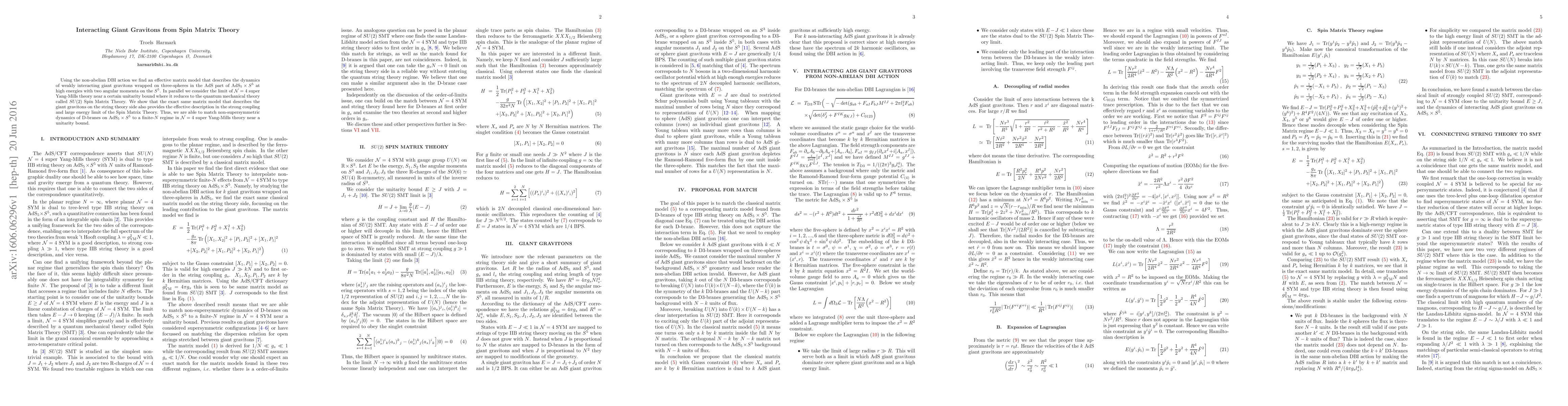 Using the non-abelian DBI action we find an effective matrix model that describes the dynamics of weakly interacting giant gravitons wrapped on three-spheres in the AdS part of AdS_5 x S^5 at high energies with two angular momenta on the S^5. In parallel we consider the limit of \CN=4 super Yang-Mills theory near a certain unitarity bound where it reduces to the quantum mechanical theory called SU(2) Spin Matrix Theory. We show that the exact same matrix model that describes the giant gravitons on the string theory side also provides the effective description in the strong coupling and large energy limit of the Spin Matrix Theory. Thus, we are able to match non-supersymmetric dynamics of D-branes on AdS_5 x S^5 to a finite-N regime in \CN=4 super Yang-Mills theory near a unitarity bound.