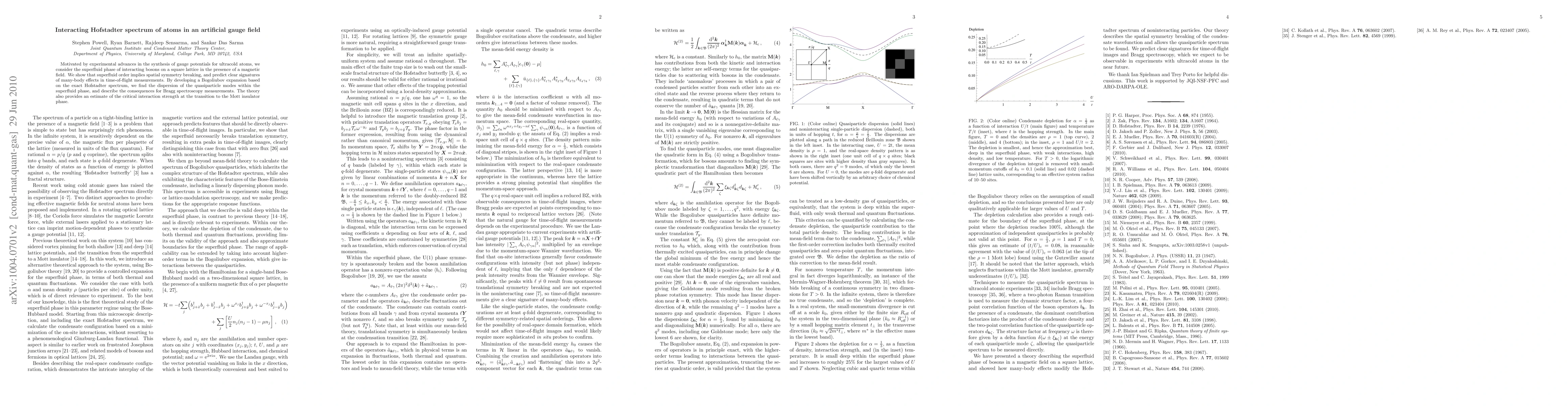 Motivated by experimental advances in the synthesis of gauge potentials for ultracold atoms, we consider the superfluid phase of interacting bosons on a square lattice in the presence of a magnetic field. We show that superfluid order implies spatial symmetry breaking, and predict clear signatures of many-body effects in time-of-flight measurements. By developing a Bogoliubov expansion based on the exact Hofstadter spectrum, we find the dispersion of the quasiparticle modes within the superfluid phase, and describe the consequences for Bragg spectroscopy measurements. The theory also provides an estimate of the critical interaction strength at the transition to the Mott insulator phase.