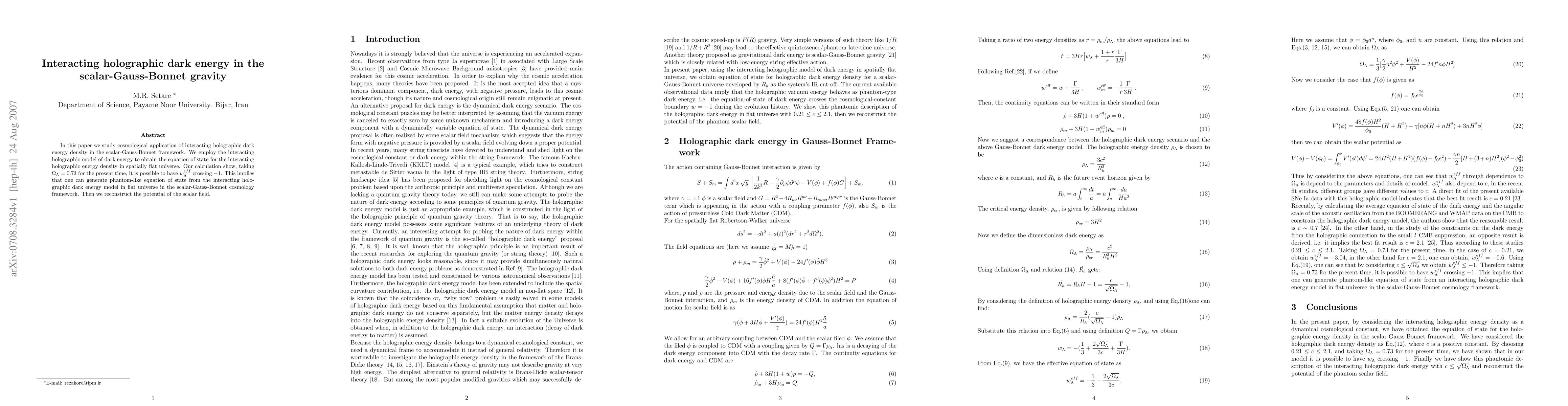 In this paper we study cosmological application of interacting holographic dark energy density in the scalar-Gauss-Bonnet framework. We employ the interacting holographic model of dark energy to obtain the equation of state for the interacting holographic energy density in spatially flat universe. Our calculation show, taking $\Omega_{\Lambda}=0.73$ for the present time, it is possible to have $w_{\rm \Lambda}^{eff}$ crossing -1. This implies that one can generate phantom-like equation of state from the interacting holographic dark energy model in flat universe in the scalar-Gauss-Bonnet cosmology framework. Then we reconstruct the potential of the scalar field.