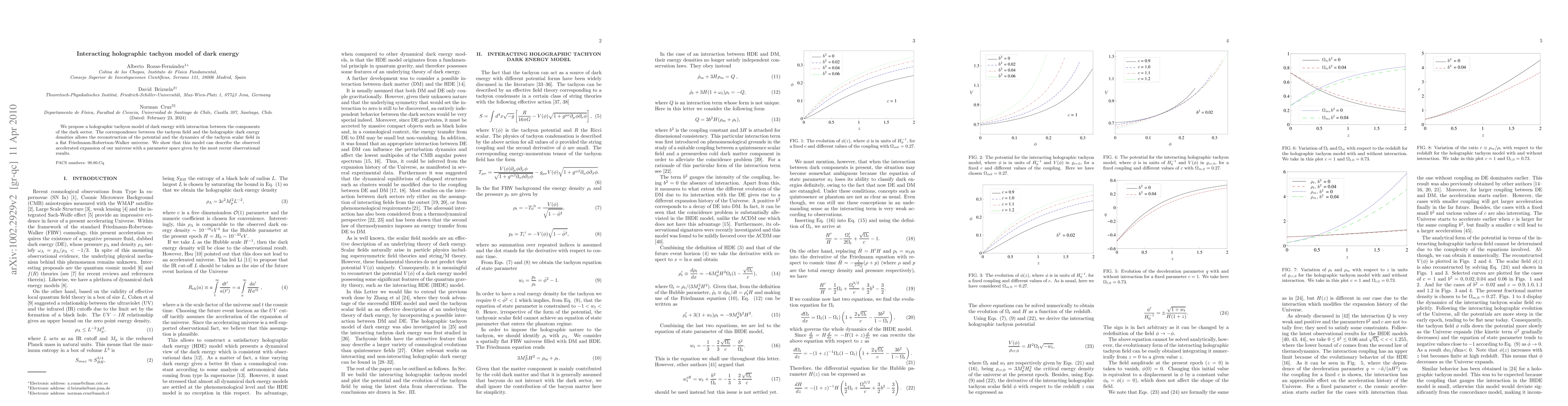 This paper proposes a holographic tachyon model for dark energy that includes interaction between dark sector components, enabling the reconstruction of the tachyon potential and dynamics. The model successfully describes the observed accelerated expansion of the universe, consistent with recent observational data.