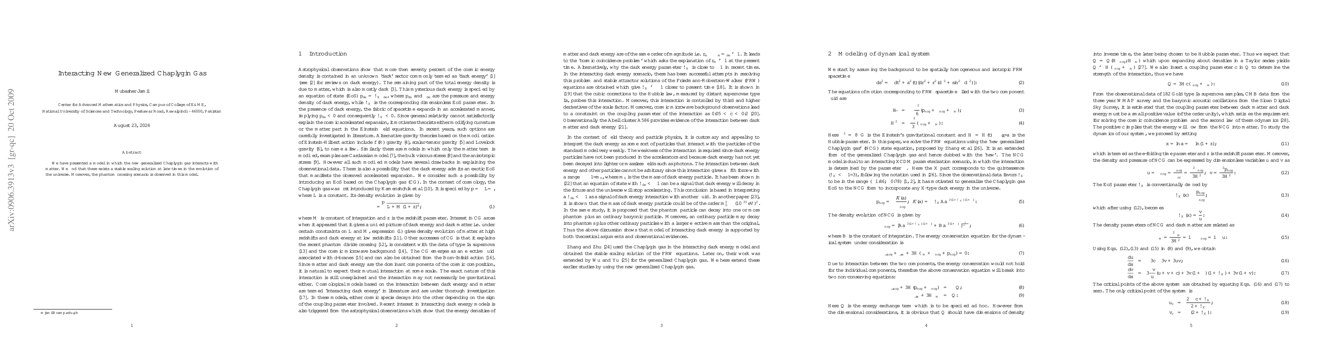 Researchers have developed a model of the universe where the new generalized Chaplygin gas interacts with matter, leading to stable scaling solutions at late times and phantom crossing scenarios.