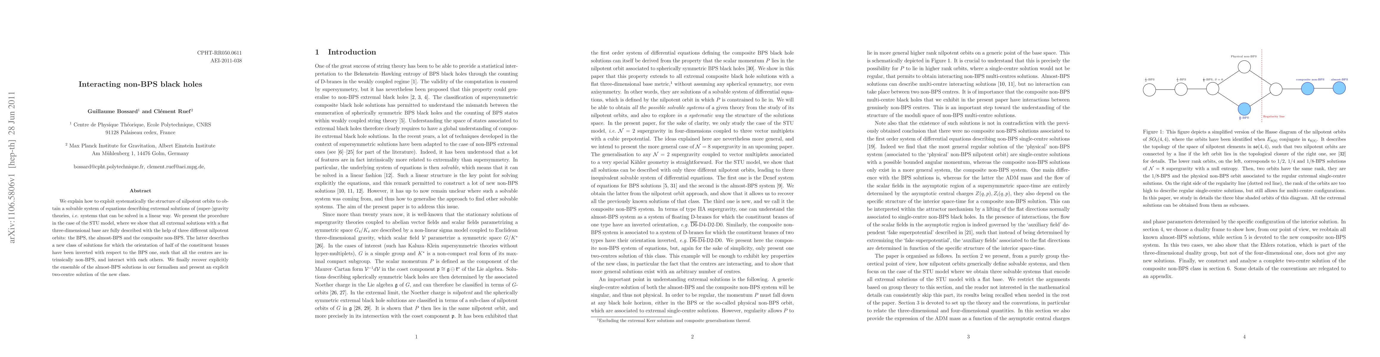 We explain how to exploit systematically the structure of nilpotent orbits to obtain a solvable system of equations describing extremal solutions of (super-)gravity theories, i.e. systems that can be solved in a linear way. We present the procedure in the case of the STU model, where we show that all extremal solutions with a flat three-dimensional base are fully described with the help of three different nilpotent orbits: the BPS, the almost-BPS and the composite non-BPS. The latter describes a new class of solutions for which the orientation of half of the constituent branes have been inverted with respect to the BPS one, such that all the centres are intrinsically non-BPS, and interact with each others. We finally recover explicitly the ensemble of the almost-BPS solutions in our formalism and present an explicit two-centre solution of the new class.