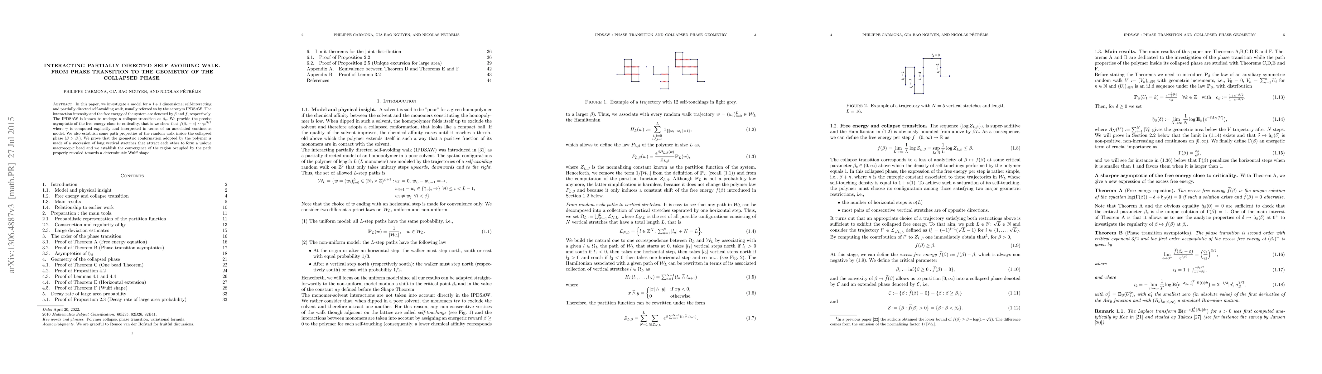 This paper studies a $1+1$ dimensional self-interacting partially directed self-avoiding walk (IPDSAW) and its phase transition, revealing the precise asymptotic behavior of the free energy near criticality and identifying the geometric conformation of the polymer in the collapsed phase, characterized by long vertical stretches forming a macroscopic bead.