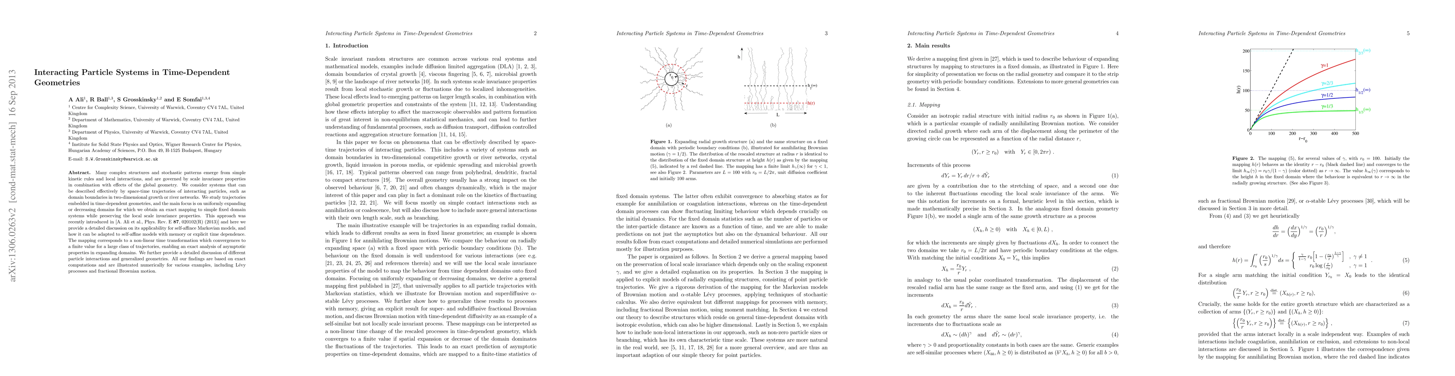 This research paper explores how to analyze particle systems in time-dependent geometries using a non-linear time transformation that maps expanding domains to simpler systems, enabling the study of asymptotic properties.