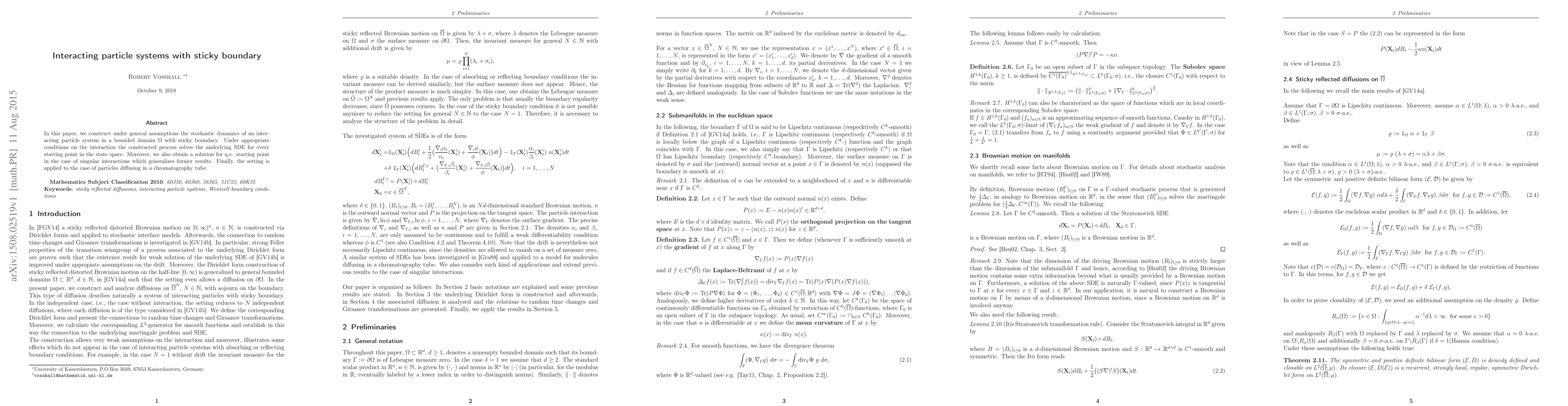 This paper constructs the stochastic dynamics of an interacting particle system within a bounded domain with sticky boundaries, proving solutions under general interaction conditions and extending results to singular interactions. The framework is exemplified by particles diffusing in a chromatography tube.