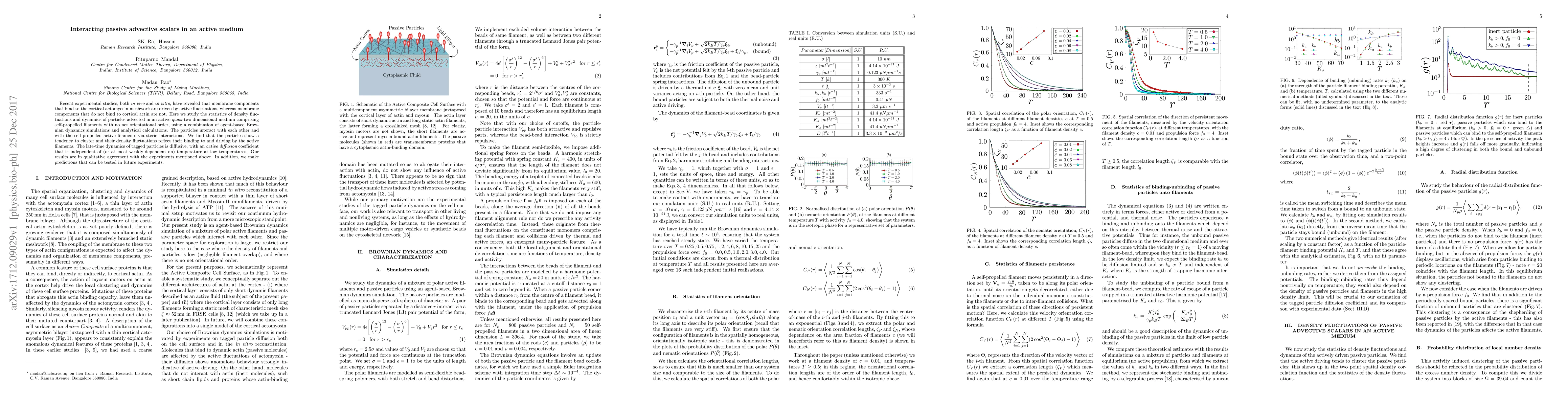 Recent experimental studies, both in vivo and in vitro, have revealed that membrane components that bind to the cortical actomyosin meshwork are driven by active fluctuations, whereas membrane components that do not bind to cortical actin are not. Here we study the statistics of density fluc- tuations and dynamics of particles advected in an active quasi-two dimensional medium comprising self-propelled filaments with no net orientational order, using a combination of agent-based Brow- nian dynamics simulations and analytical calculations. The particles interact with each other and with the self-propelled active filaments via steric interactions. We find that the particles show a tendency to cluster and their density fluctuations reflect their binding to and driving by the active filaments. The late-time dynamics of tagged particles is diffusive, with an active diffusion coefficient that is independent of (or at most weakly-dependent on) temperature at low temperatures. Our results are in qualitative agreement with the experiments mentioned above. In addition, we make predictions that can be tested in future experiments.