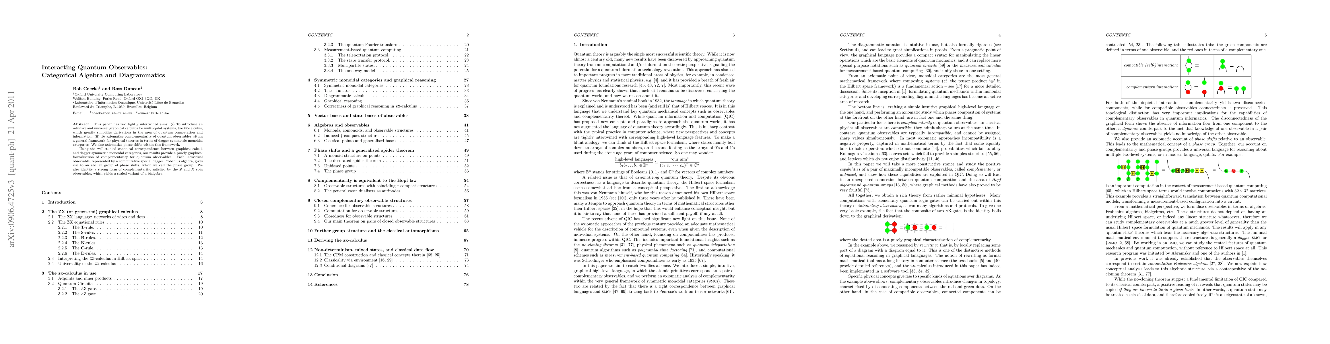 This paper has two tightly intertwined aims: (i) To introduce an intuitive and universal graphical calculus for multi-qubit systems, the ZX-calculus, which greatly simplifies derivations in the area of quantum computation and information. (ii) To axiomatise complementarity of quantum observables within a general framework for physical theories in terms of dagger symmetric monoidal categories. We also axiomatize phase shifts within this framework. Using the well-studied canonical correspondence between graphical calculi and symmetric monoidal categories, our results provide a purely graphical formalisation of complementarity for quantum observables. Each individual observable, represented by a commutative special dagger Frobenius algebra, gives rise to an abelian group of phase shifts, which we call the phase group. We also identify a strong form of complementarity, satisfied by the Z and X spin observables, which yields a scaled variant of a bialgebra.