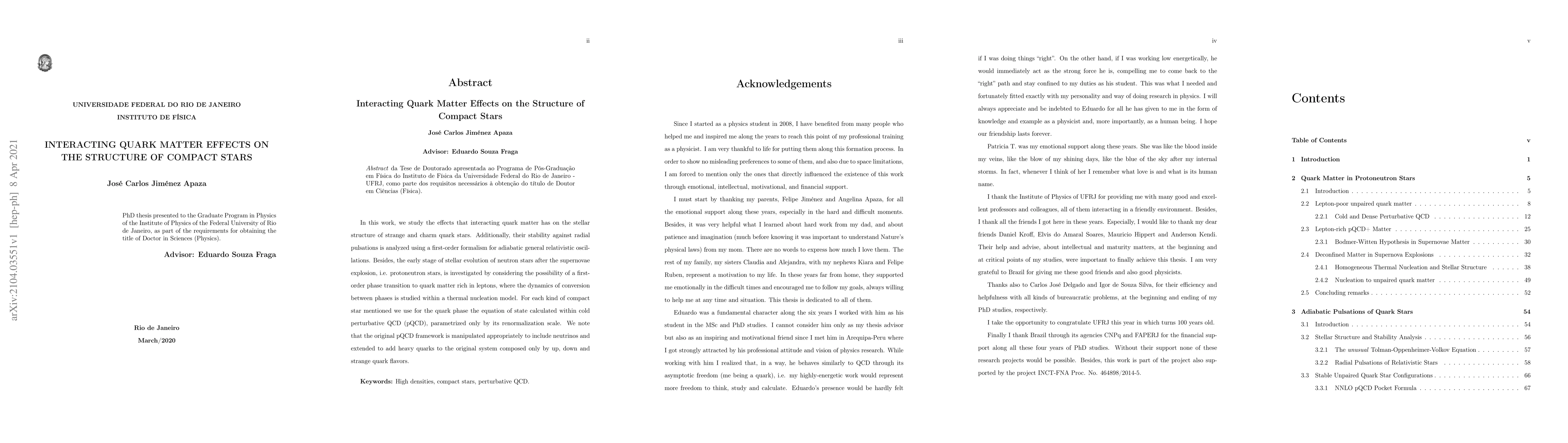 In this work, we study the effects that interacting quark matter has on the stellar structure of strange and charm quark stars. Additionally, their stability against radial pulsations is analyzed using a first-order formalism for adiabatic general relativistic oscillations. Besides, the early stage of stellar evolution of neutron stars after the supernovae explosion, i.e. protoneutron stars, is investigated by considering the possibility of a first-order phase transition to quark matter rich in leptons, where the dynamics of conversion between phases is studied within a thermal nucleation model. For each kind of compact star mentioned we use for the quark phase the equation of state calculated within cold perturbative QCD (pQCD), parametrized only by its renormalization scale. We note that the original pQCD framework is manipulated appropriately to include neutrinos and extended to add heavy quarks to the original system composed only by up, down and strange quark flavors.