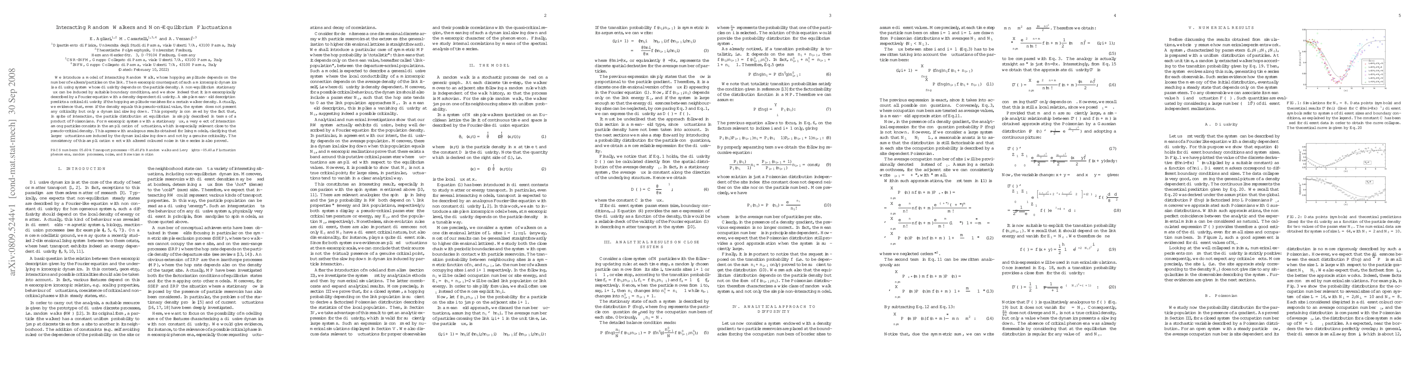 We introduce a model of interacting Random Walk, whose hopping amplitude depends on the number of walkers/particles on the link. The mesoscopic counterpart of such a microscopic dynamics is a diffusing system whose diffusivity depends on the particle density. A non-equilibrium stationary flux can be induced by suitable boundary conditions, and we show indeed that it is mesoscopically described by a Fourier equation with a density dependent diffusivity. A simple mean-field description predicts a critical diffusivity if the hopping amplitude vanishes for a certain walker density. Actually, we evidence that, even if the density equals this pseudo-critical value, the system does not present any criticality but only a dynamical slowing down. This property is confirmed by the fact that, in spite of interaction, the particle distribution at equilibrium is simply described in terms of a product of Poissonians. For mesoscopic systems with a stationary flux, a very effect of interaction among particles consists in the amplification of fluctuations, which is especially relevant close to the pseudo-critical density. This agrees with analogous results obtained for Ising models, clarifying that larger fluctuations are induced by the dynamical slowing down and not by a genuine criticality. The consistency of this amplification effect with altered coloured noise in time series is also proved.