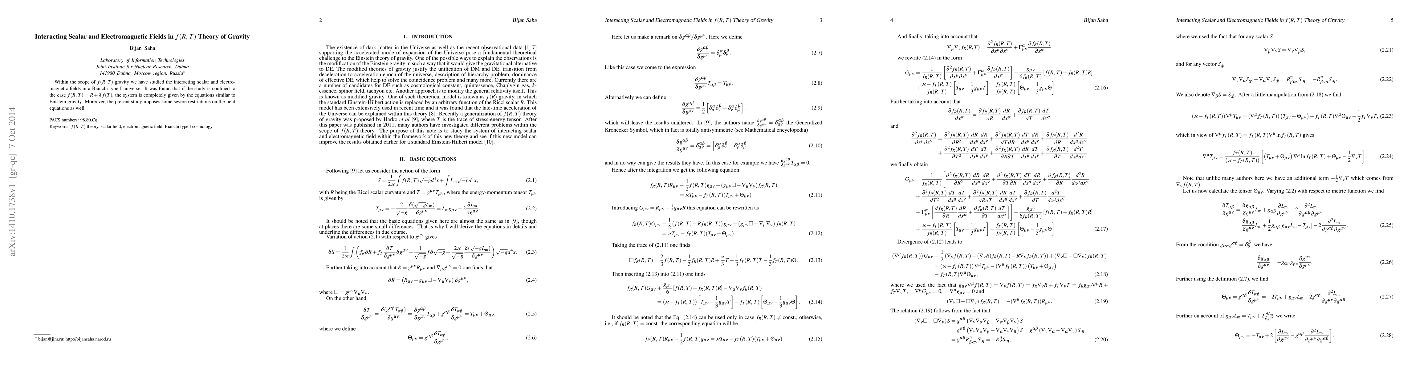 Within the scope of $f(R,\,T)$ gravity we have studied the interacting scalar and electromagnetic fields in a Bianchi type I universe. It was found that if the study is confined to the case $f(R,\,T) = R + \lambda f(T)$, the system is completely given by the equations similar to Einstein gravity. Moreover, the present study imposes some severe restrictions on the field equations as well.