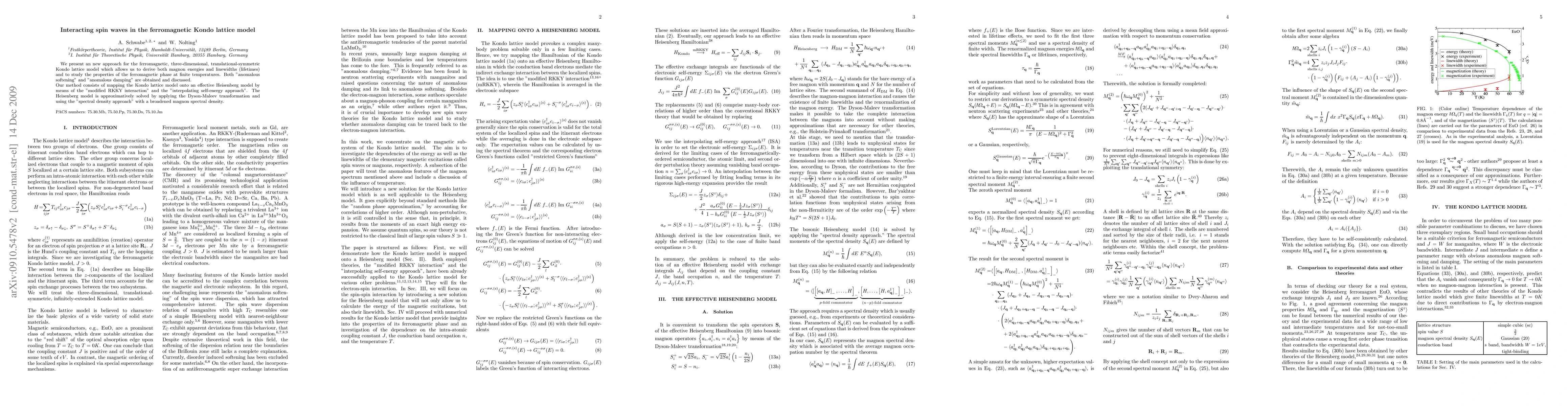 We present an new approach for the ferromagnetic, three-dimensional, translational-symmetric Kondo lattice model which allows us to derive both magnon energies and linewidths (lifetimes) and to study the properties of the ferromagnetic phase at finite temperatures. Both "anomalous softening" and "anomalous damping" are obtained and discussed. Our method consists of mapping the Kondo lattice model onto an effective Heisenberg model by means of the "modified RKKY interaction" and the "interpolating self-energy approach". The Heisenberg model is approximatively solved by applying the Dyson-Maleev transformation and using the "spectral density approach" with a broadened magnon spectral density.