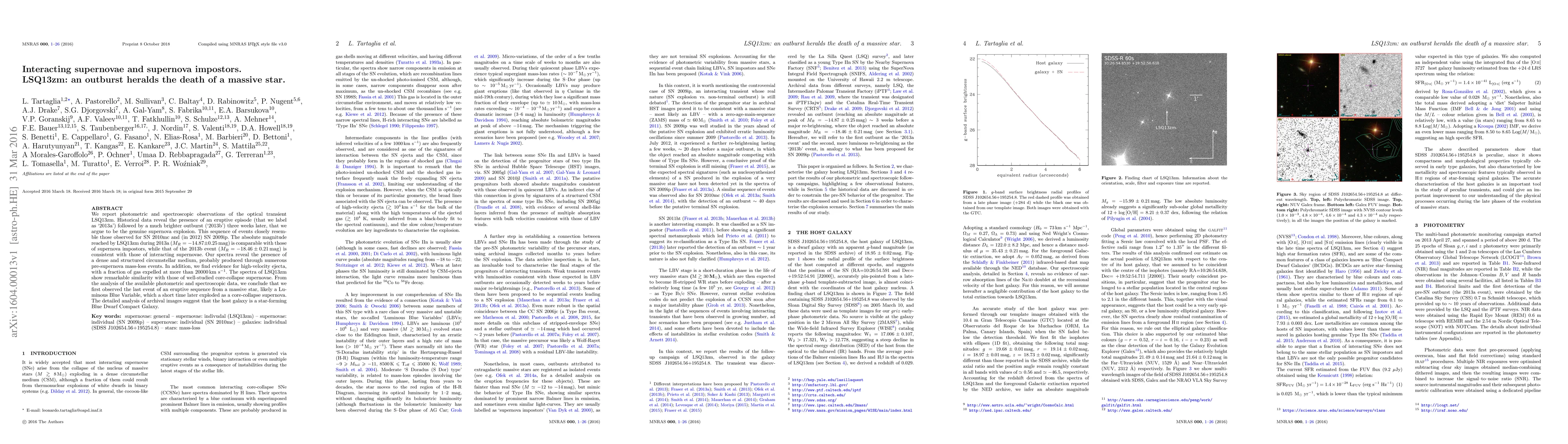 We report photometric and spectroscopic observations of the optical transient LSQ13zm. Historical data reveal the presence of an eruptive episode (that we label as `2013a') followed by a much brighter outburst (`2013b') three weeks later, that we argue to be the genuine supernova explosion. This sequence of events closely resemble those observed for SN2010mc and (in 2012) SN2009ip. The absolute magnitude reached by LSQ13zm during 2013a ($M_R=-14.87\pm0.25\,\rm{mag}$) is comparable with those of supernova impostors, while that of the 2013b event ($M_R=-18.46\pm0.21\,\rm{mag}$) is consistent with those of interacting supernovae. Our spectra reveal the presence of a dense and structured circumstellar medium, probably produced through numerous pre-supernova mass-loss events. In addition, we find evidence for high-velocity ejecta, with a fraction of gas expelled at more than 20000\kms. The spectra of LSQ13zm show remarkable similarity with those of well-studied core-collapse supernovae. From the analysis of the available photometric and spectroscopic data, we conclude that we first observed the last event of an eruptive sequence from a massive star, likely a Luminous Blue Variable, which a short time later exploded as a core-collapse supernova. The detailed analysis of archival images suggest that the host galaxy is a star-forming Blue Dwarf Compact Galaxy.