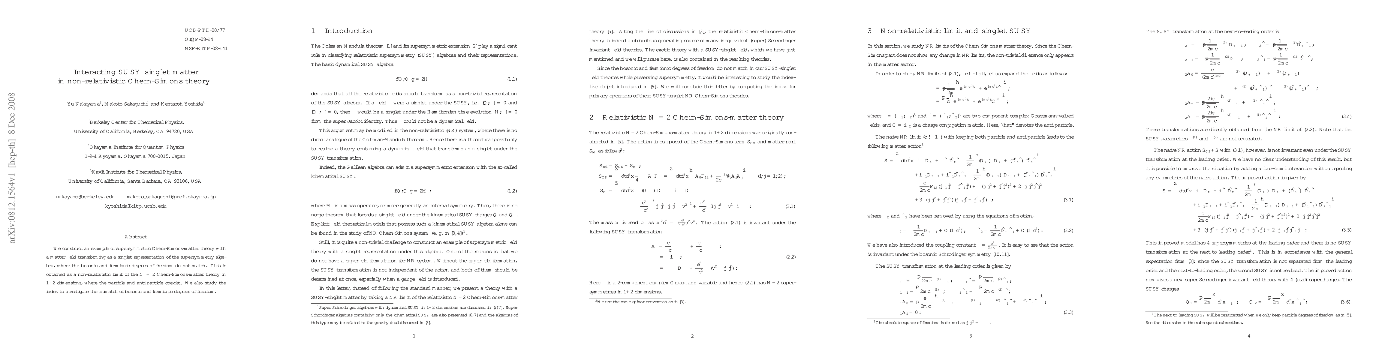 This paper constructs a supersymmetric Chern-Simons-matter theory with singlet matter, derived from the non-relativistic limit of N=2 Chern-Simons-matter theory, and investigates the mismatch between bosonic and fermionic degrees of freedom through the index.