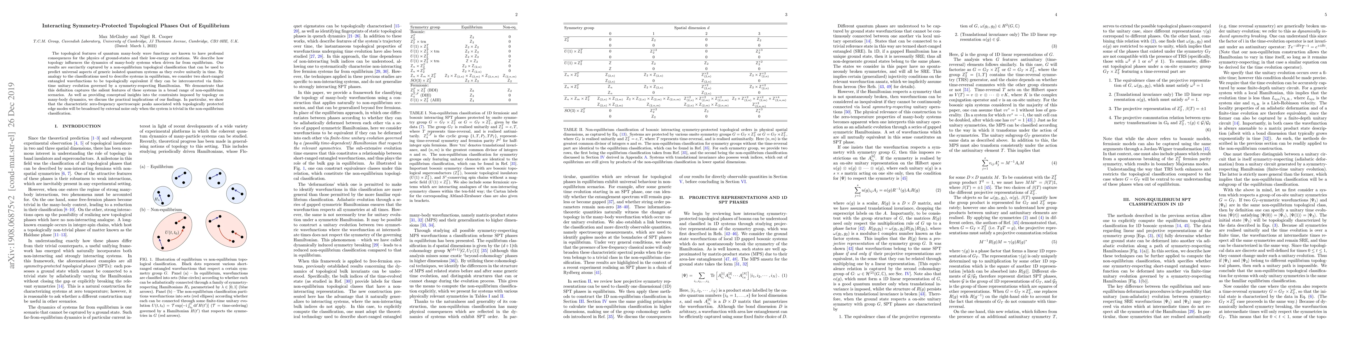 The topological features of quantum many-body wave functions are known to have profound consequences for the physics of ground-states and their low-energy excitations. We describe how topology influences the dynamics of many-body systems when driven far from equilibrium. Our results are succinctly captured by a nonequilibrium topological classification that can be used to predict universal aspects of generic isolated quantum systems as they evolve unitarily in time. By analogy to the classifications used to describe systems in equilibrium, we consider two short-ranged entangled wave functions to be topologically equivalent if they can be interconverted via finite-time unitary evolution governed by a symmetry-respecting Hamiltonian. We demonstrate that this definition captures the salient features of these systems in a broad range of nonequilibrium scenarios. As well as providing conceptual insights into the constraints imposed by topology on many-body dynamics, we discuss the practical implications of our findings. In particular, we show that the characteristic zero-frequency spectroscopic peaks associated with topologically protected edge modes will be broadened by external noise only when the system is trivial in the nonequilibrium classification.
