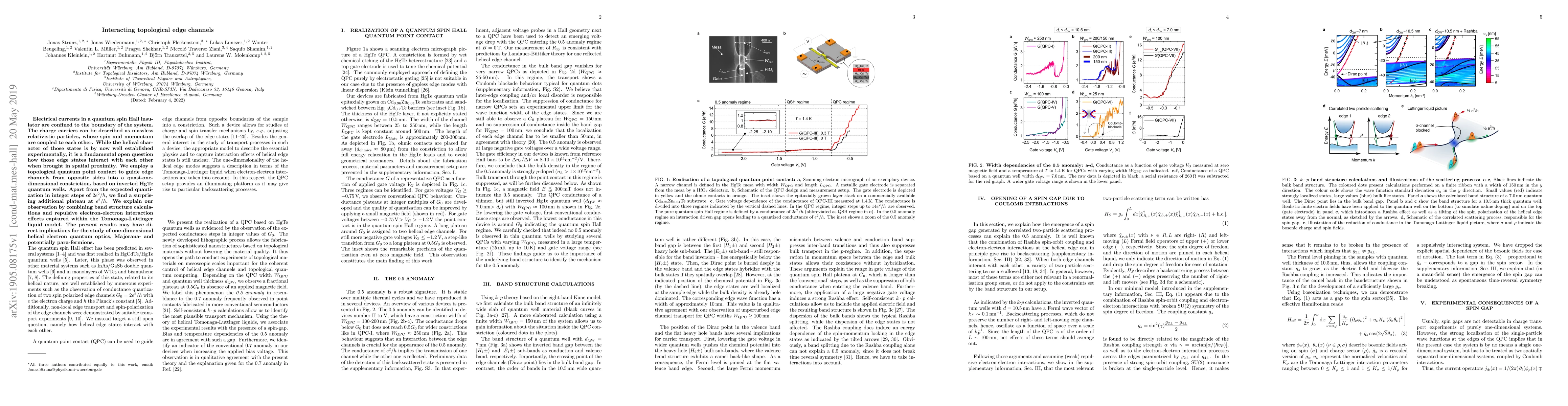 Researchers studied how edge channels in quantum spin Hall insulators interact when brought close together, finding an unexpected plateau at a specific charge value and explaining it with band structure calculations and electron-electron interaction effects.