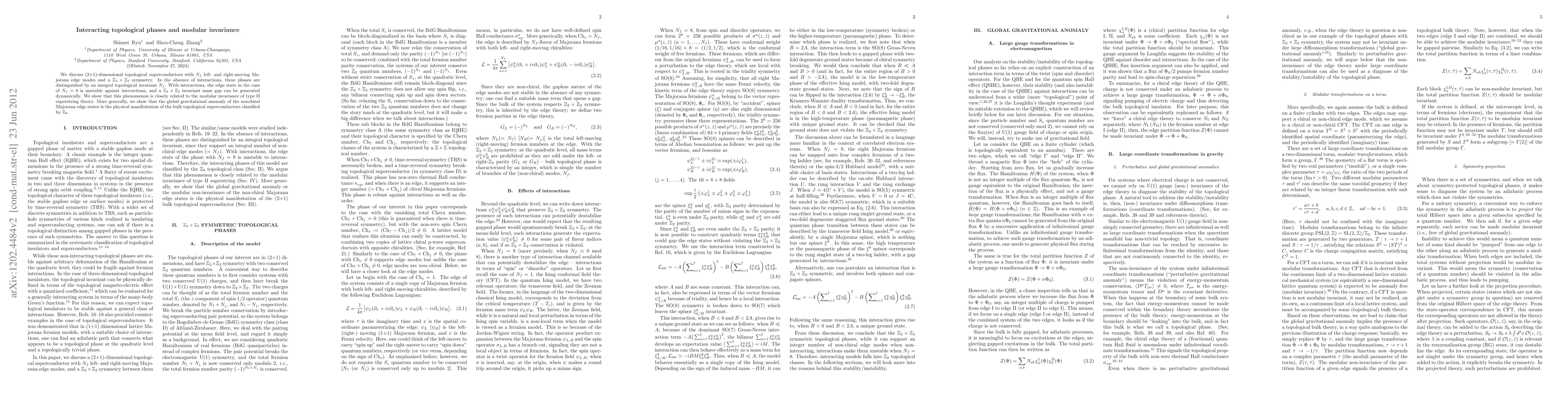 We discuss a (2+1) dimensional topological superconductor with $N_f$ left- and right-moving Majorana edge modes and a $\mathbb{Z}_2\times \mathbb{Z}_2$ symmetry. In the absence of interactions, these phases are distinguished by an integral topological invariant $N_f$. With interactions, the edge state in the case $N_f=8$ is unstable against interactions, and a $\mathbb{Z}_2\times \mathbb{Z}_2$ invariant mass gap can be generated dynamically. We show that this phenomenon is closely related to the modular invariance of type II superstring theory. More generally, we show that the global gravitational anomaly of the non-chiral Majorana edge states is the physical manifestation of the bulk topological superconductors classified by $\mathbb{Z}_8$.