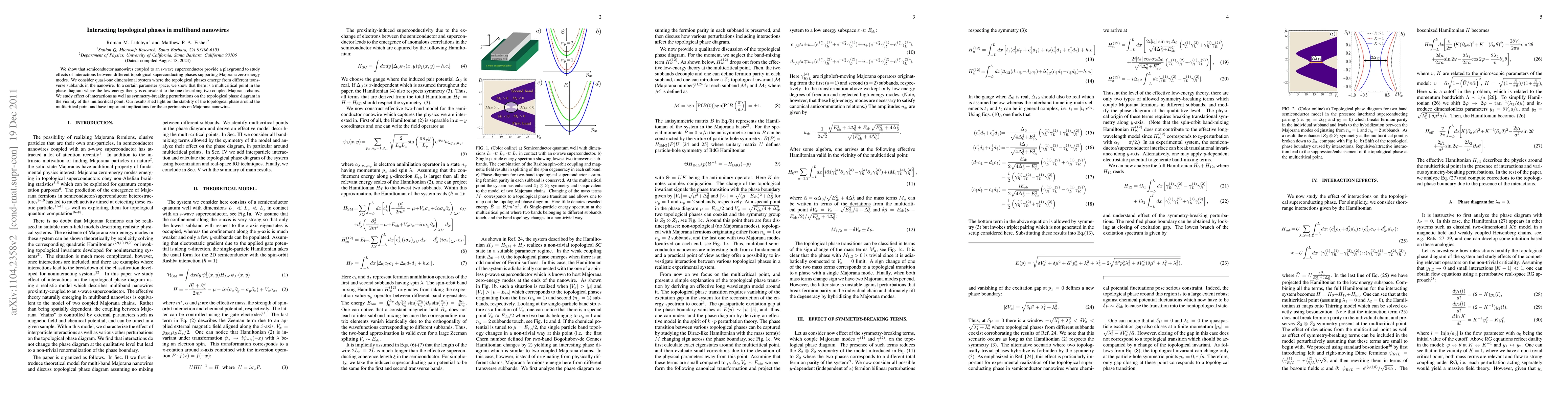 We show that semiconductor nanowires coupled to an s-wave superconductor provide a playground to study effects of interactions between different topological superconducting phases supporting Majorana zero-energy modes. We consider quasi-one dimensional system where the topological phases emerge from different transverse subbands in the nanowire. In a certain parameter space, we show that there is a multicritical point in the phase diagram where the low-energy theory is equivalent to the one describing two coupled Majorana chains. We study effect of interactions as well as symmetry-breaking perturbations on the topological phase diagram in the vicinity of this multicritical point. Our results shed light on the stability of the topological phase around the multicritical point and have important implications for the experiments on Majorana nanowires.