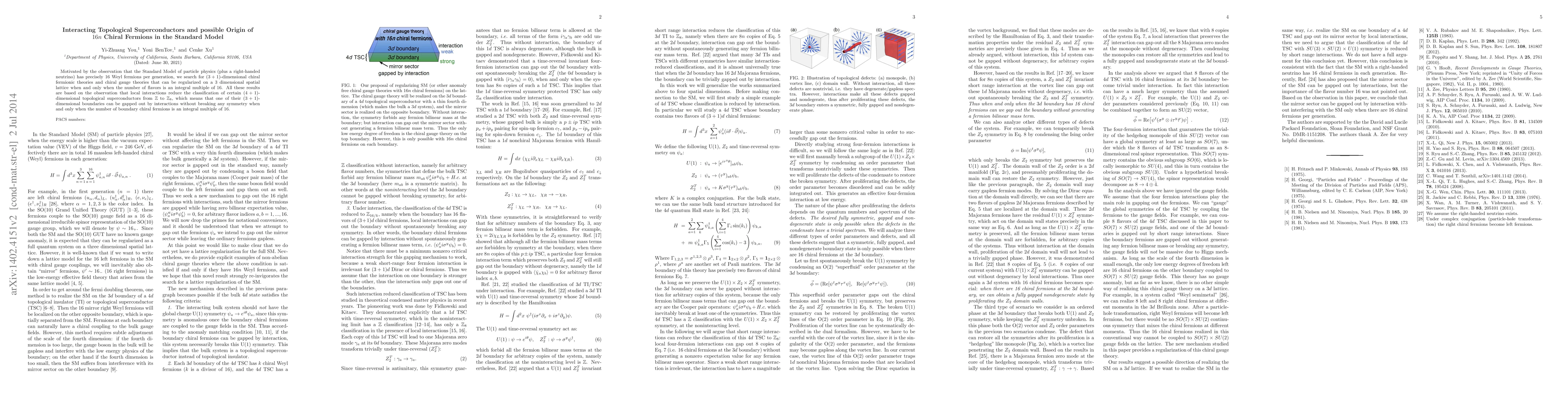 This paper explores the connection between interacting topological superconductors and the presence of $16n$ chiral fermions in the Standard Model, suggesting that local interactions can reduce the classification of certain $(4+1)$-dimensional topological superconductors, leading to a gapped $(3+1)$-dimensional boundary with an integral multiple of $16$ chiral fermions.