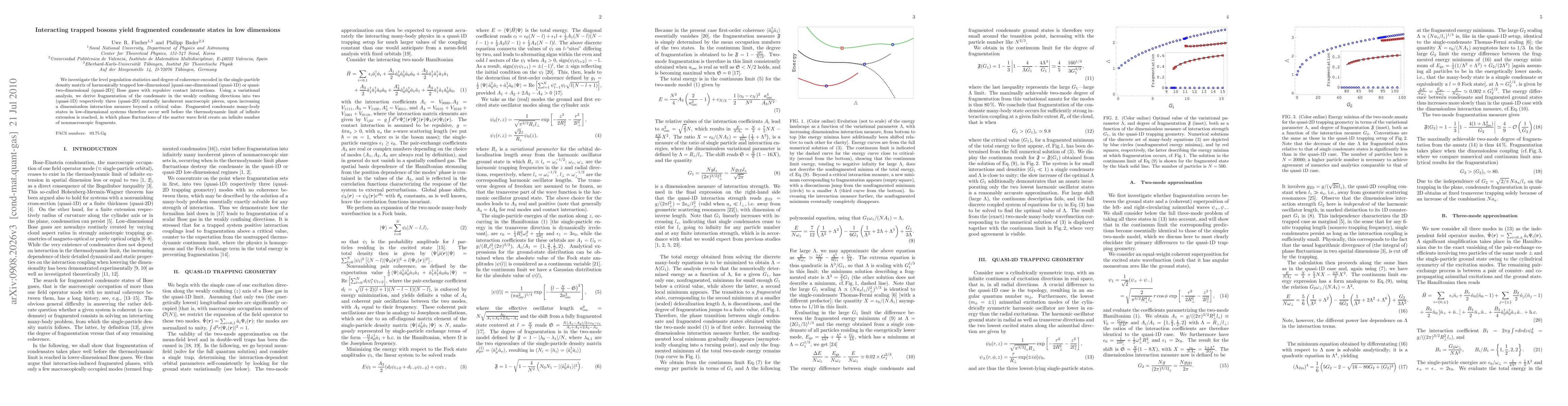 Researchers found that in low-dimensional boson systems, adding repulsive interactions can cause the condensate to break into multiple, incoherent pieces. This happens even before the system reaches its infinite limit, where phase fluctuations would normally create many fragments.