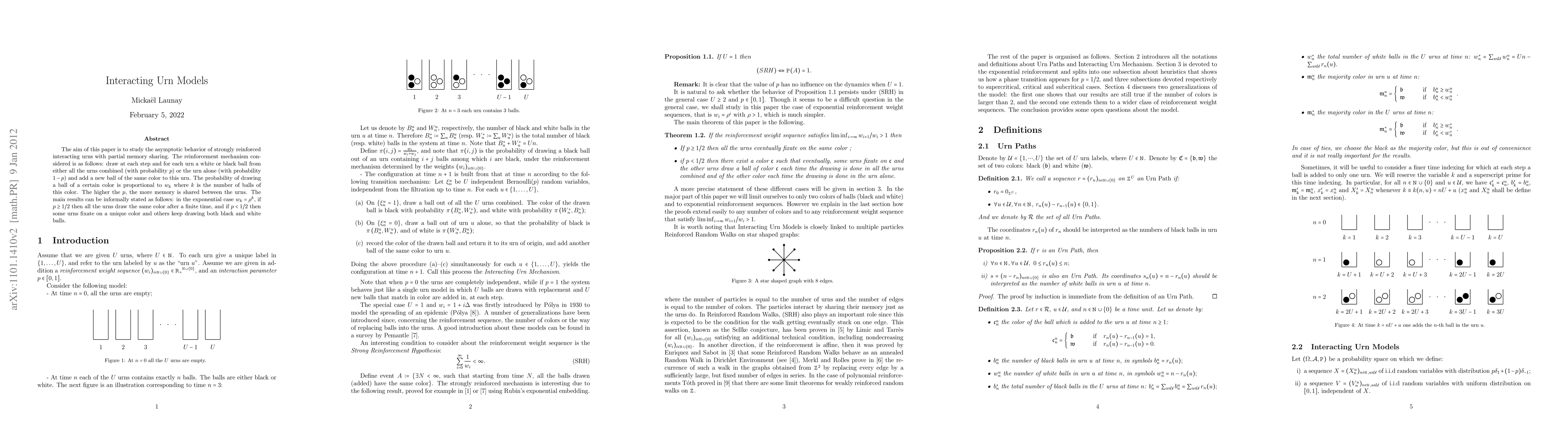 This paper investigates the asymptotic behavior of strongly reinforced interacting urn models with partial memory sharing. It finds that for $p\geq 1/2$, all urns converge to the same color, while for $p<1/2$, some urns fixate on a single color while others continue drawing both colors.