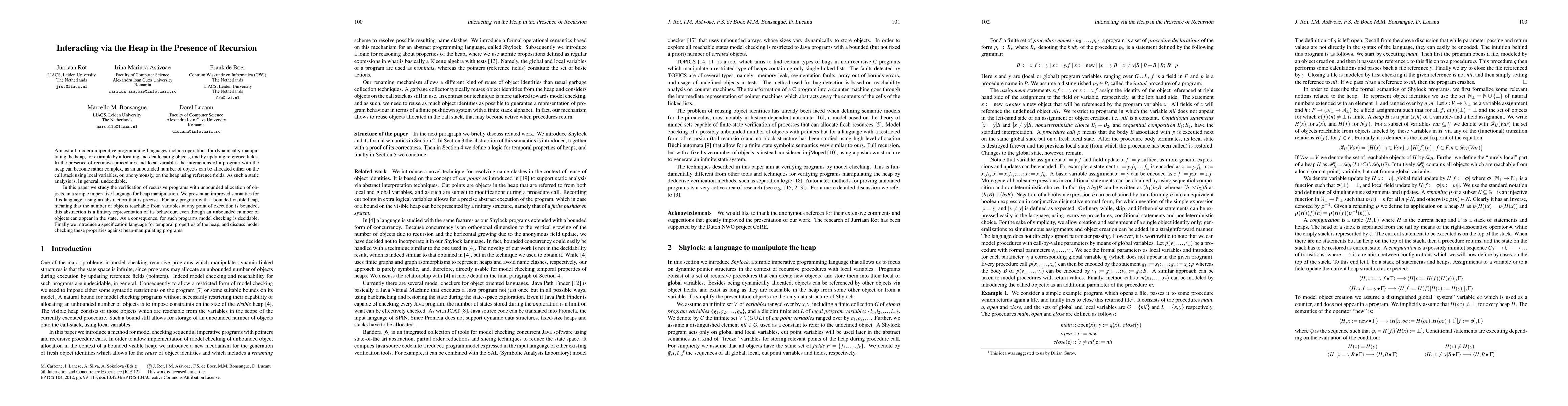 This paper presents an improved semantics for verifying recursive programs with dynamic heap manipulation, showing that model checking is decidable for programs with bounded visible heaps. It also introduces a specification language for temporal properties and discusses model checking these properties against heap-manipulating programs.
