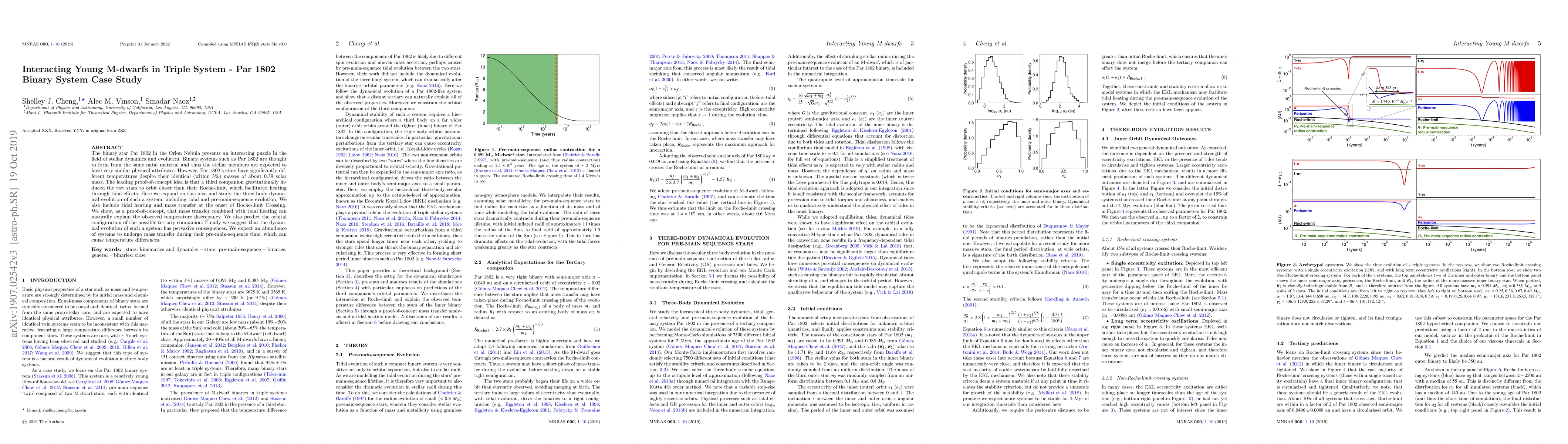 The binary star Par 1802 in the Orion Nebula presents an interesting puzzle in the field of stellar dynamics and evolution. Binary systems such as Par 1802 are thought to form from the same natal material and thus the stellar members are expected to have very similar physical attributes. However, Par 1802's stars have significantly different temperatures despite their identical (within $3\%$) masses of about $0.39$ solar mass. The leading proof-of-concept idea is that a third companion gravitationally induced the two stars to orbit closer than their Roche-limit, which facilitated heating through tidal effects. Here we expand on this idea and study the three-body dynamical evolution of such a system, including tidal and pre-main-sequence evolution. We also include tidal heating and mass transfer at the onset of Roche-limit Crossing. We show, as a proof-of-concept, that mass transfer combined with tidal heating can naturally explain the observed temperature discrepancy. We also predict the orbital configuration of the possible tertiary companion. Finally we suggest that the dynamical evolution of such a system has pervasive consequences. We expect an abundance of systems to undergo mass transfer during their pre-main-sequence time, which can cause temperature differences.
