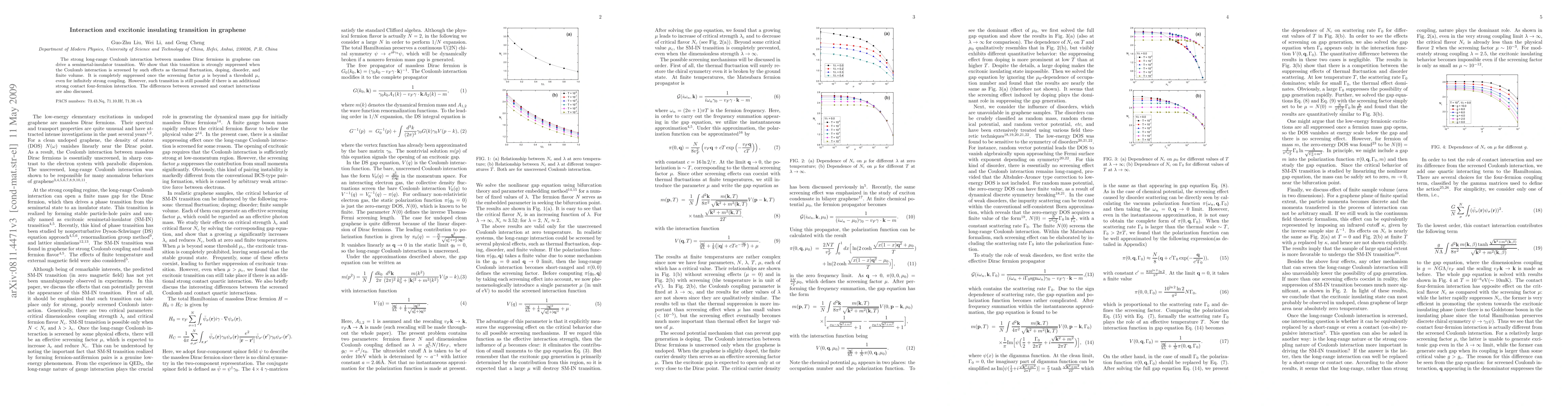 This paper demonstrates that strong Coulomb interactions in graphene can induce an excitonic insulating phase, but this transition is hindered by factors like disorder, thermal fluctuations, doping, and finite volume. The transition is fully suppressed once a certain screening threshold is surpassed, although a strong contact four-fermion interaction can still enable the transition. The study contrasts the effects of screened versus contact interactions.