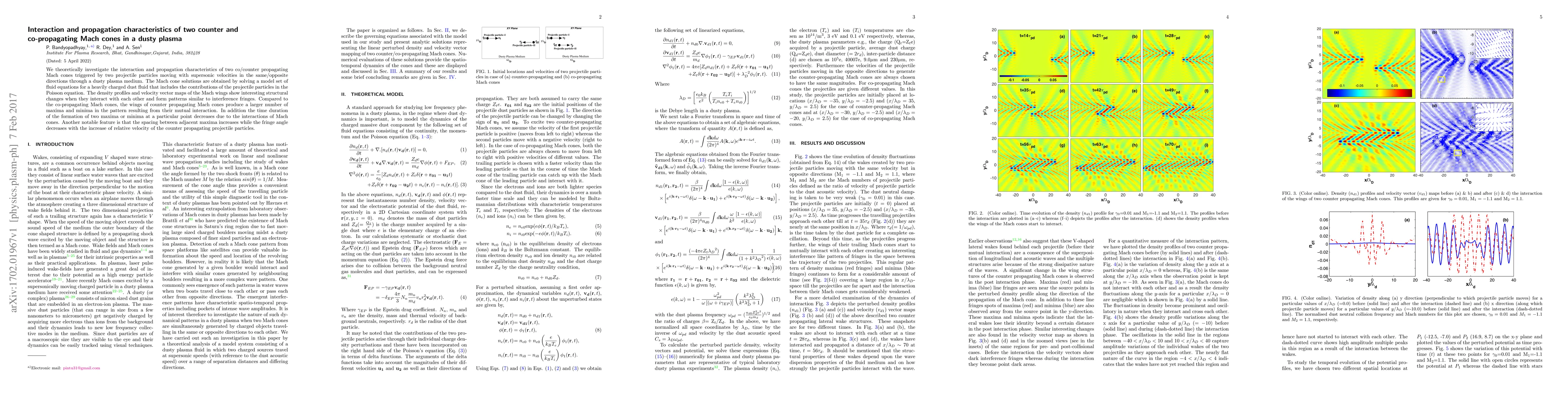 This paper investigates the interaction and propagation of Mach cones in a dusty plasma, finding that counter-propagating cones produce more complex interference patterns with increased maxima and minima compared to co-propagating cones. The study uses fluid equations to model the dust fluid and reveals changes in density profiles and velocity vectors during interactions.