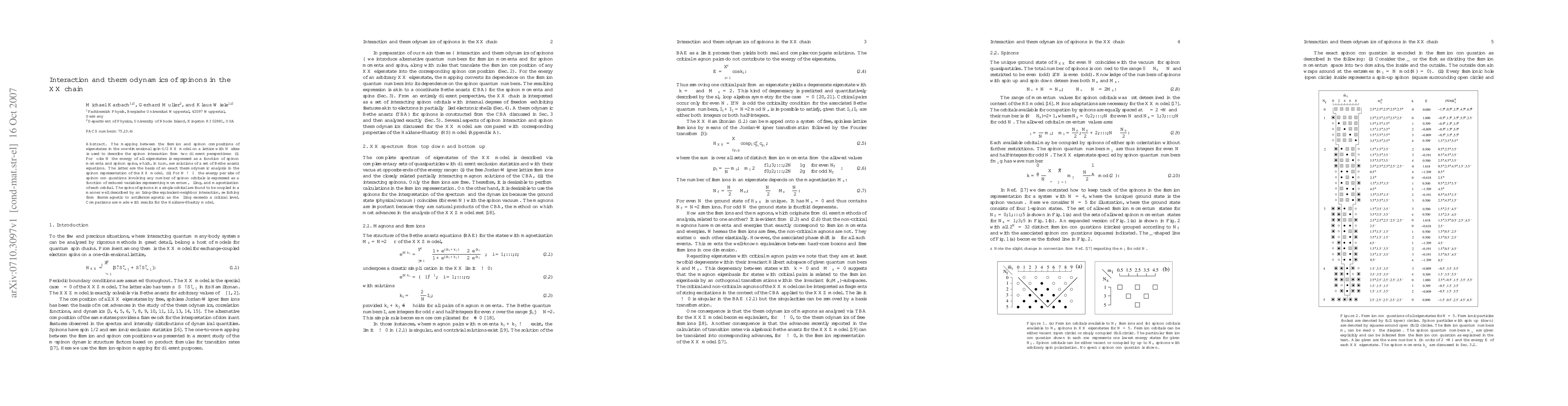 Researchers studied spinons in the XX chain model, finding that their interactions change from ferromagnetic to antiferromagnetic as filling exceeds a critical level, with behavior similar to an Ising-like interaction.